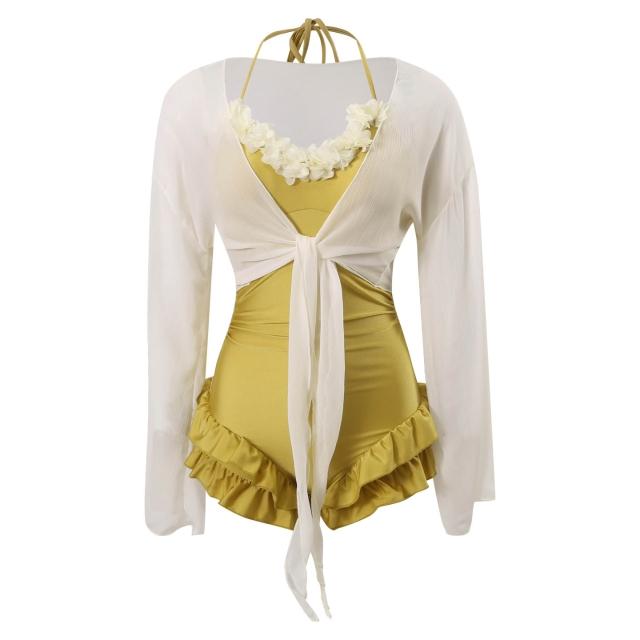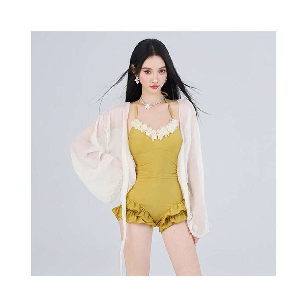 Seven七- 泳衣女2026新款溫泉遮肚顯瘦長袖罩衫保守甜美純欲少女連體泳衣女