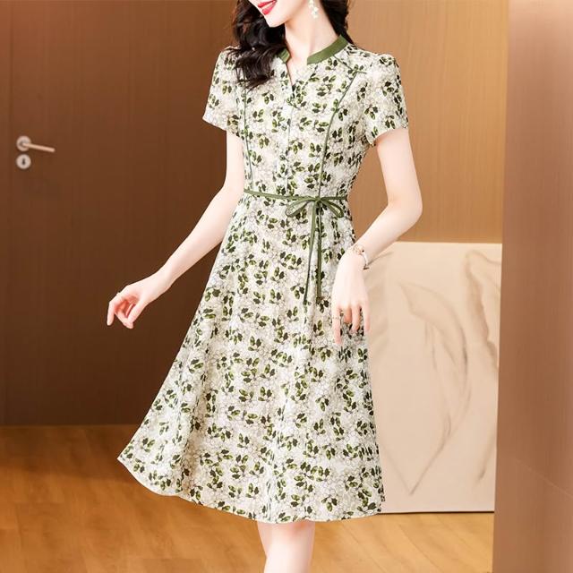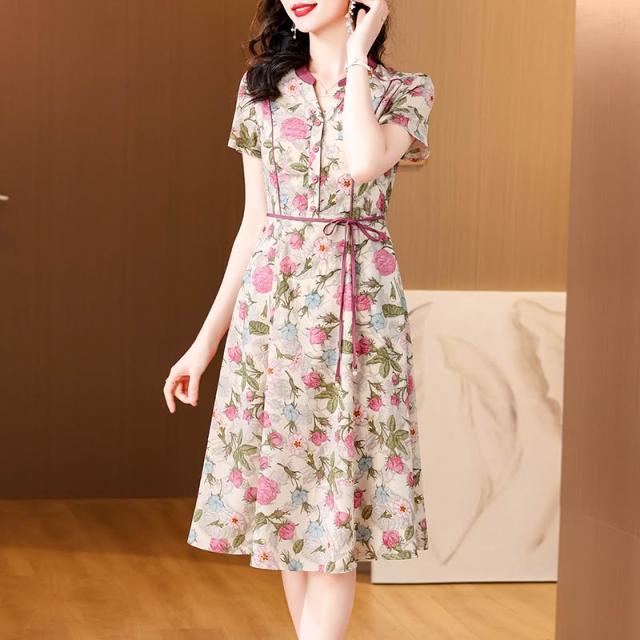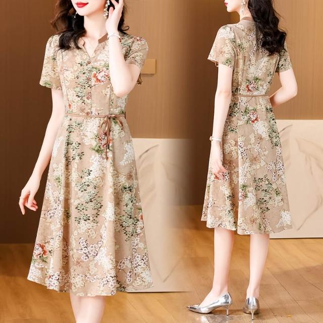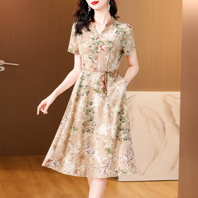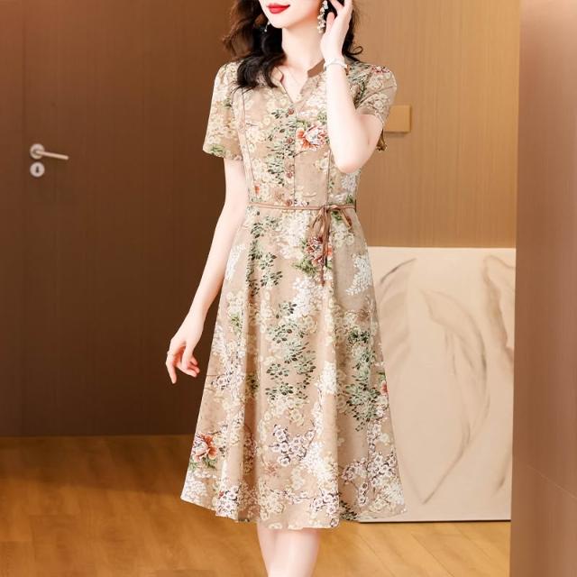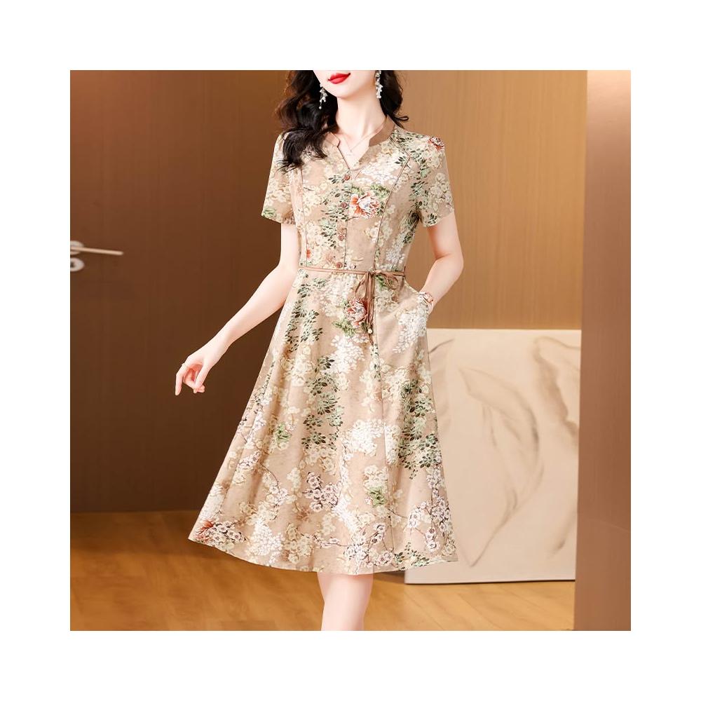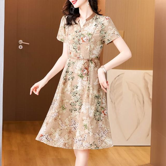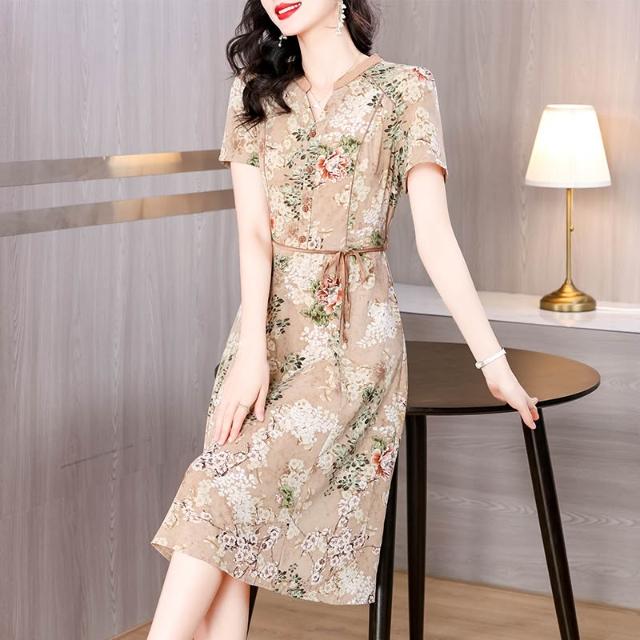 Seven七= 真絲桑蠶絲連衣裙女夏2026新款貴夫人高端洋氣質收腰顯瘦媽媽裙子