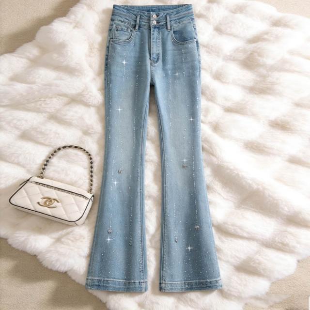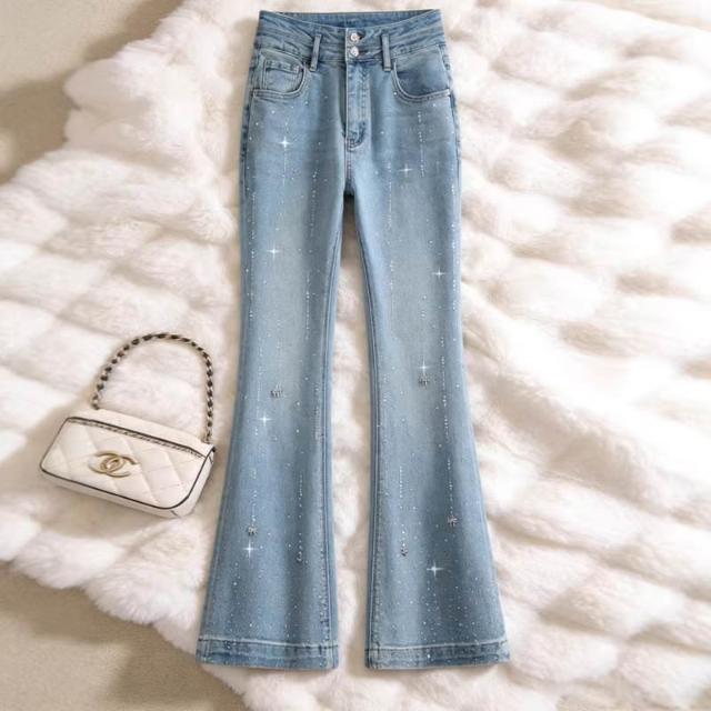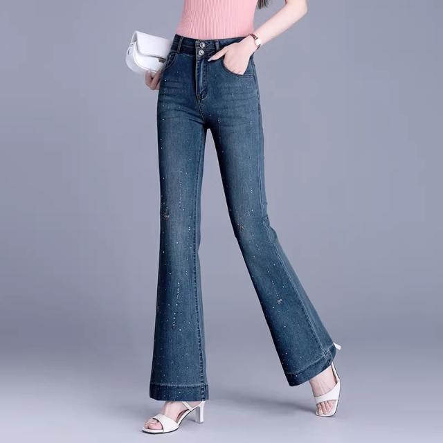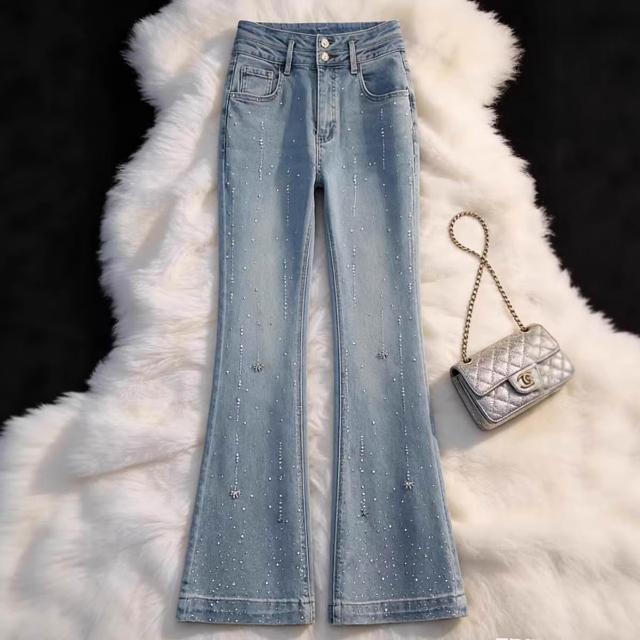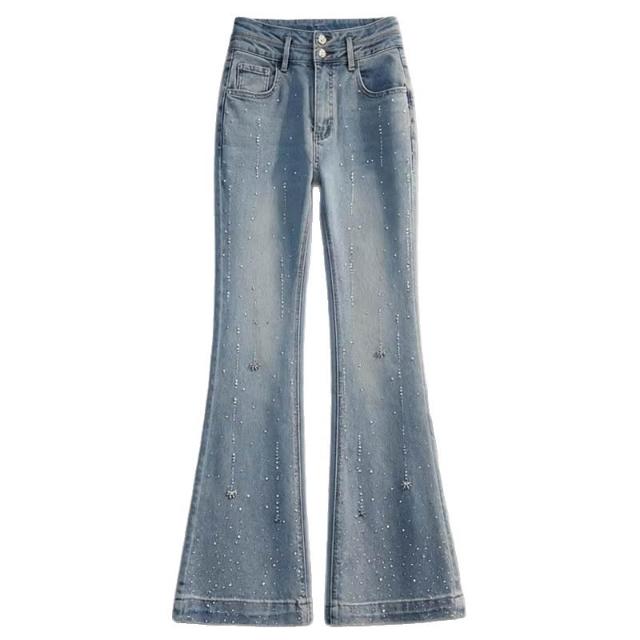 Seven七- 時尚燙鉆微喇牛仔褲女2026年春冬季新款顯瘦馬蹄褲修身新品喇叭褲