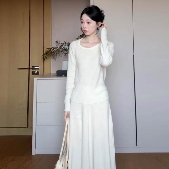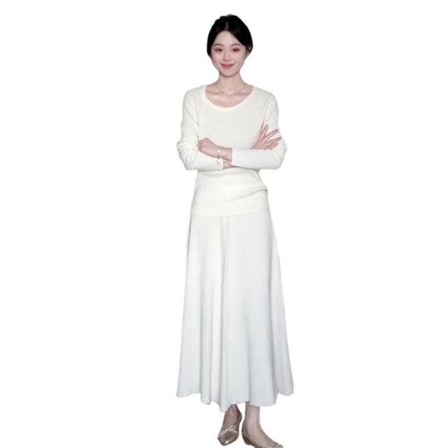 Seven七- 法式溫柔風白色針織連衣裙子女2026新款秋冬季高級感內搭長裙套裝