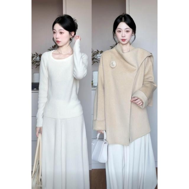 Seven七- 法式溫柔風白色針織連衣裙子女2026新款秋冬季高級感內搭長裙套裝
