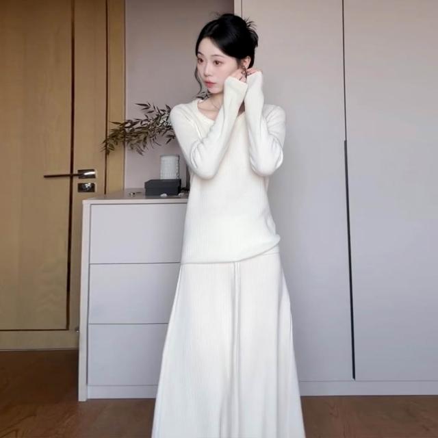 Seven七- 法式溫柔風白色針織連衣裙子女2026新款秋冬季高級感內搭長裙套裝
