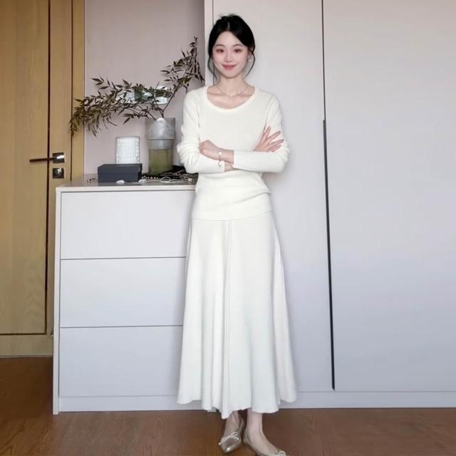 Seven七- 法式溫柔風白色針織連衣裙子女2026新款秋冬季高級感內搭長裙套裝