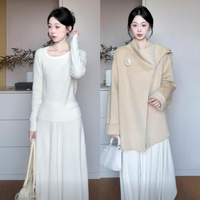 Seven七- 法式溫柔風白色針織連衣裙子女2026新款秋冬季高級感內搭長裙套裝