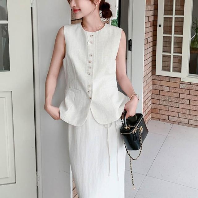 Seven七- 白色輕熟風氣質修身馬甲半身裙套裝女2026夏季新款時尚通勤兩件套