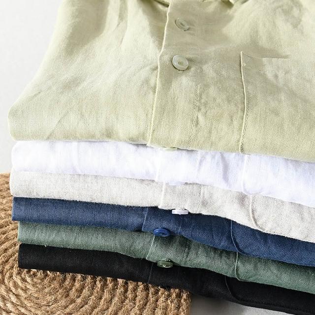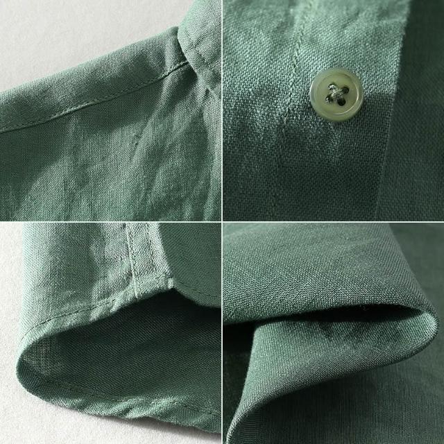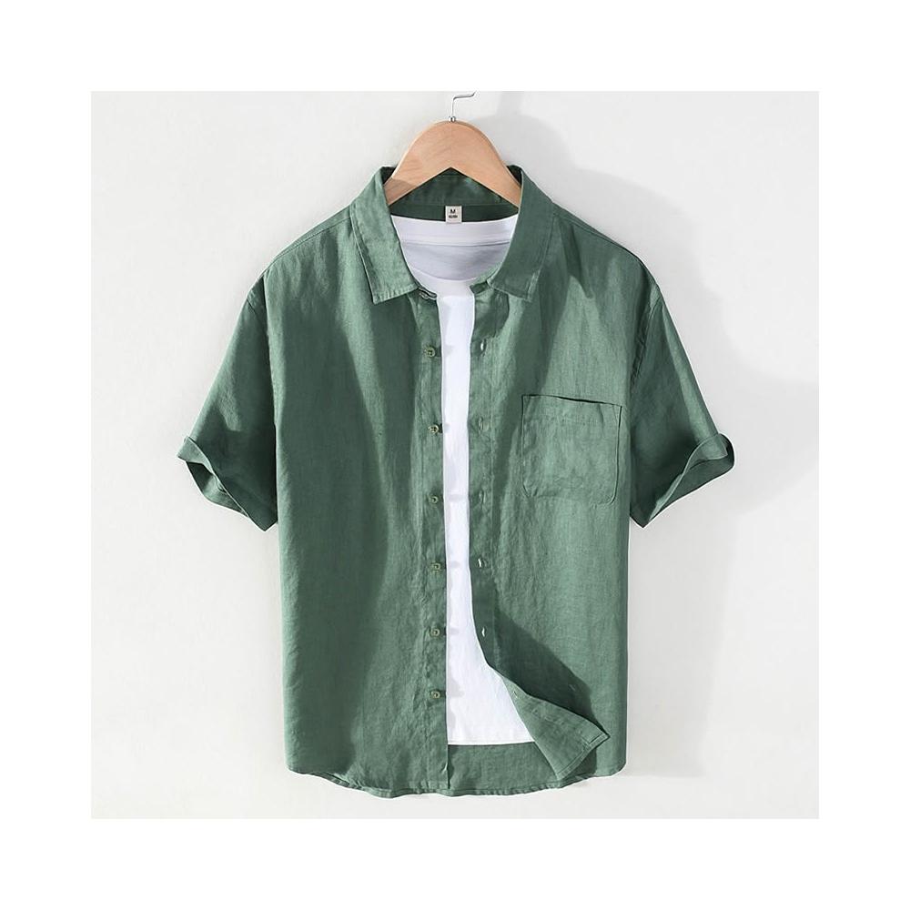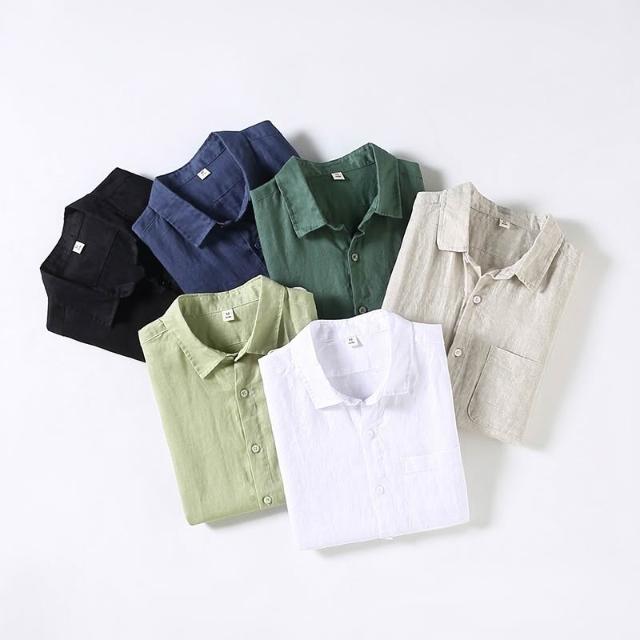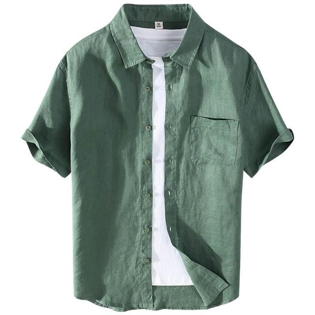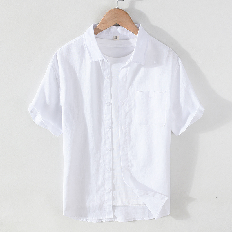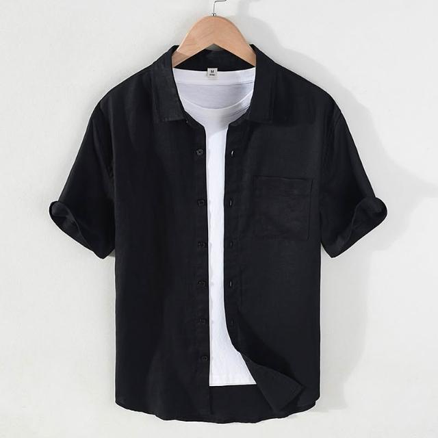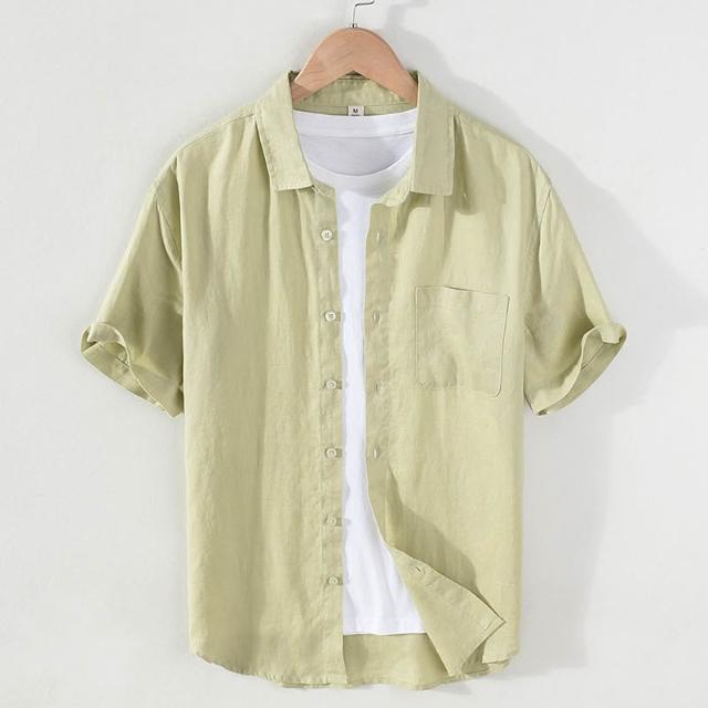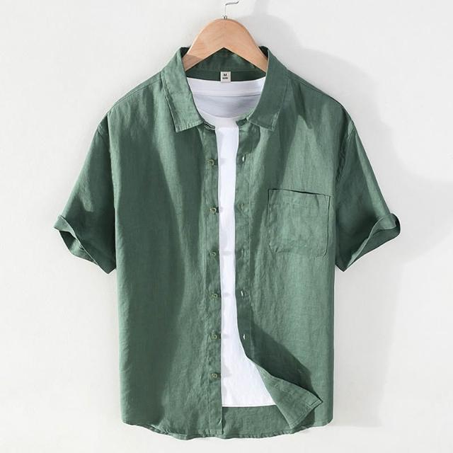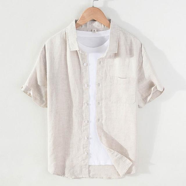 Seven七- 麻襯衫男亞麻短袖上衣夏季薄款衣服潮流寬松大碼全麻男裝襯衣半袖