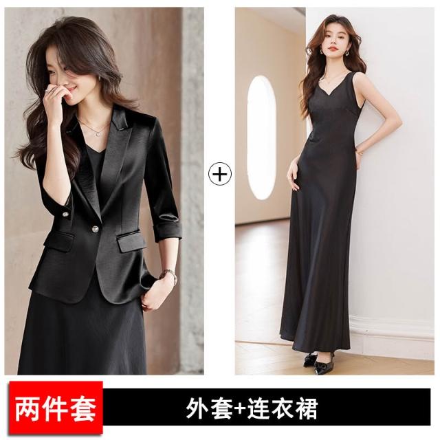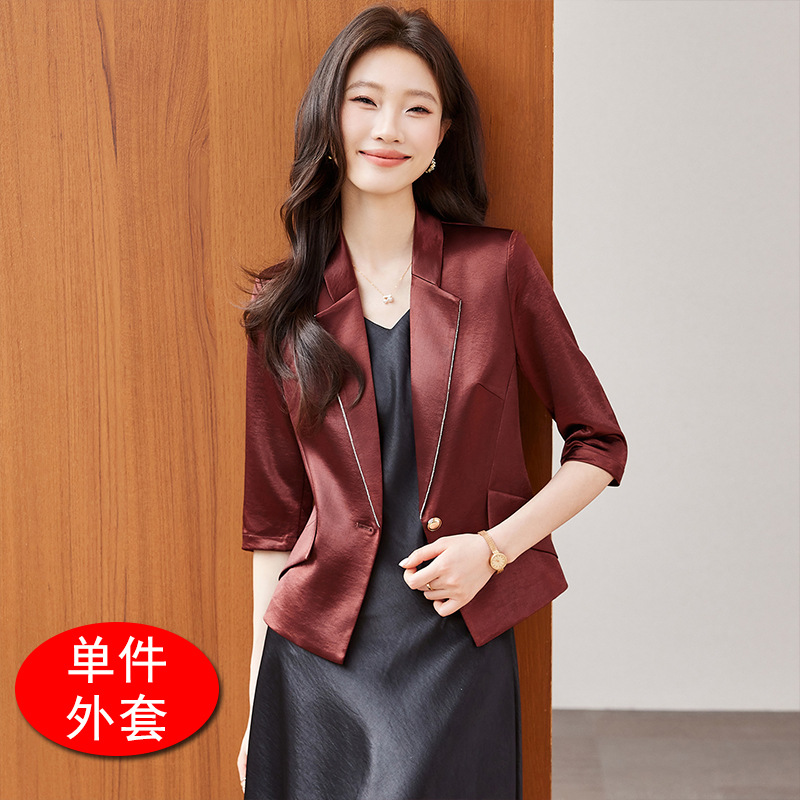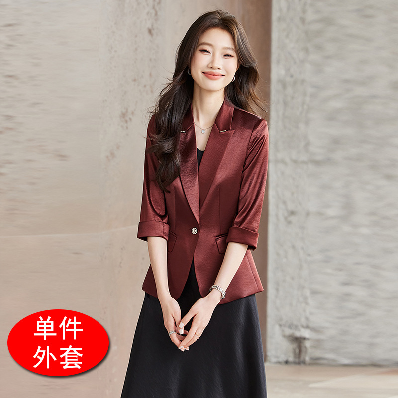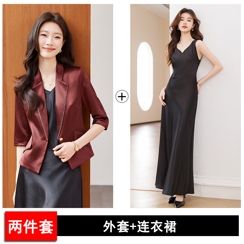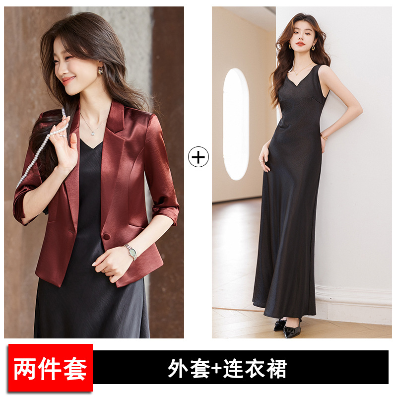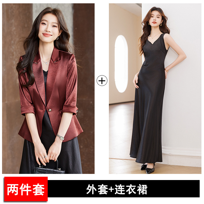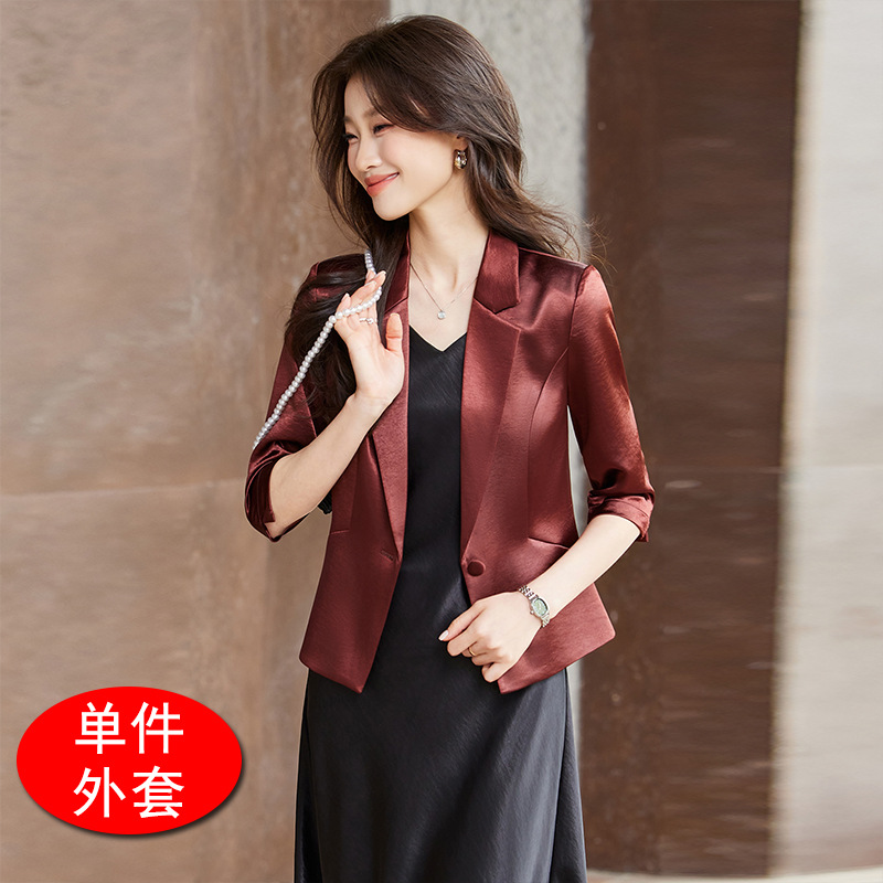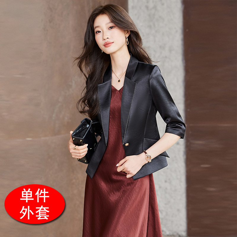 Seven七- 醋酸緞面西裝外套女小個子2026春季新款高級感薄款西服連衣裙套裝