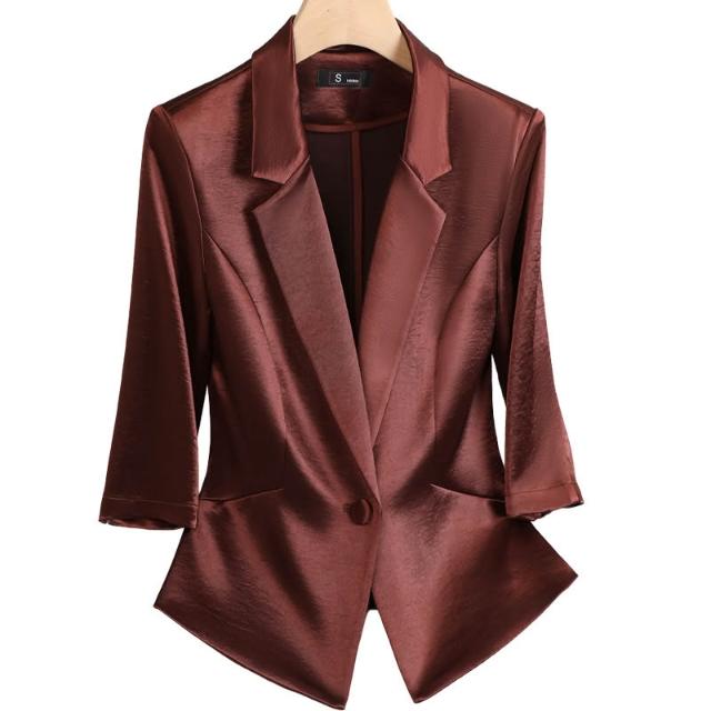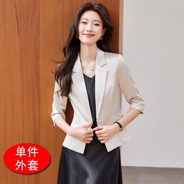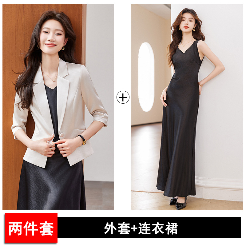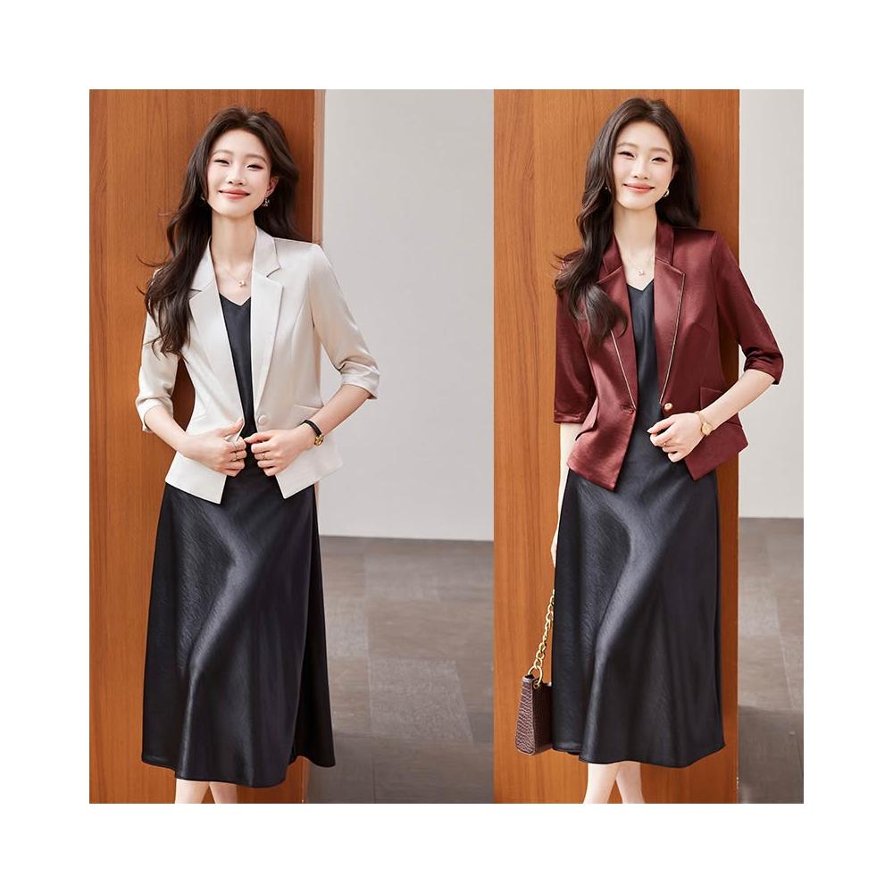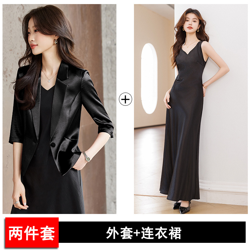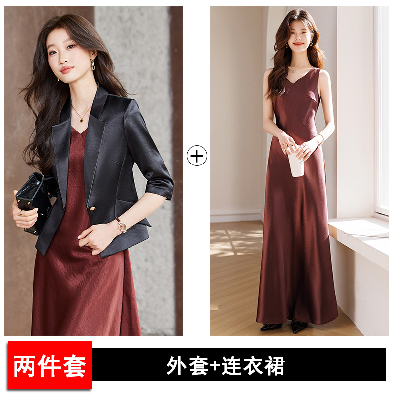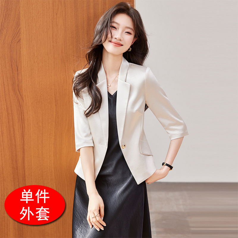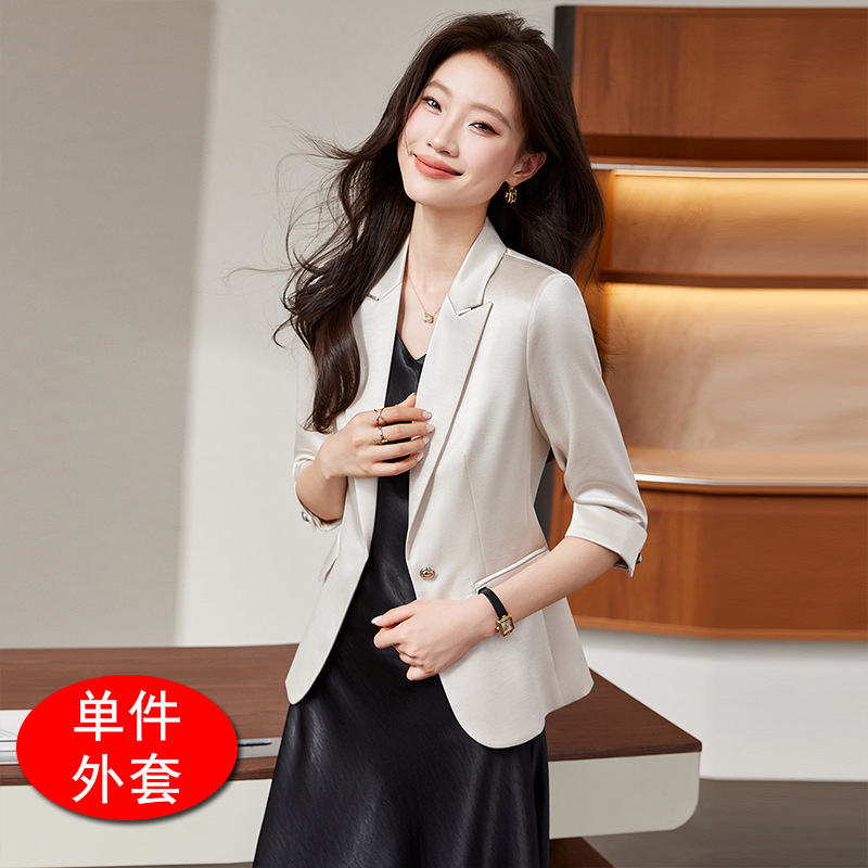 Seven七- 醋酸緞面西裝外套女小個子2026春季新款高級感薄款西服連衣裙套裝