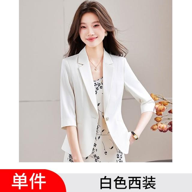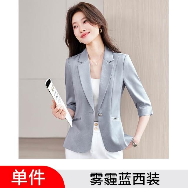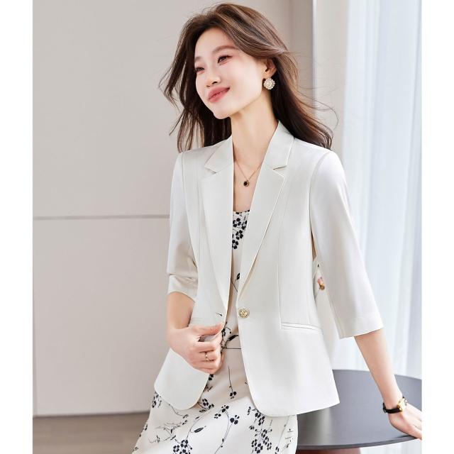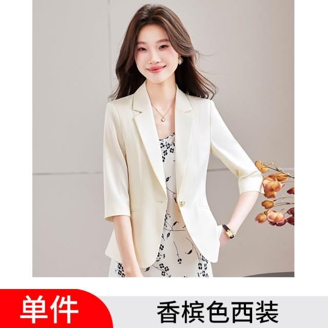 Seven七- 七分袖香槟色西裝外套女小個子2026新款春季高級感氣質女士小西服