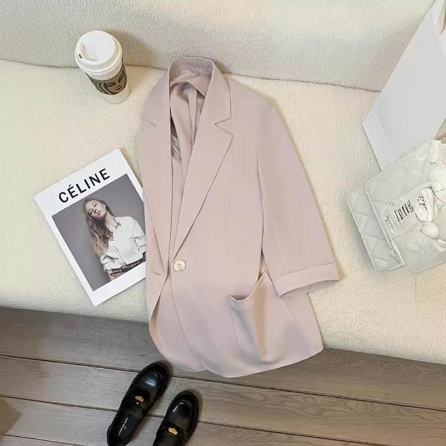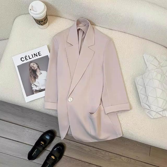Seven七- 裸粉色薄款西裝外套女2026年夏季新款韓版休閑七分袖百搭氣質西服