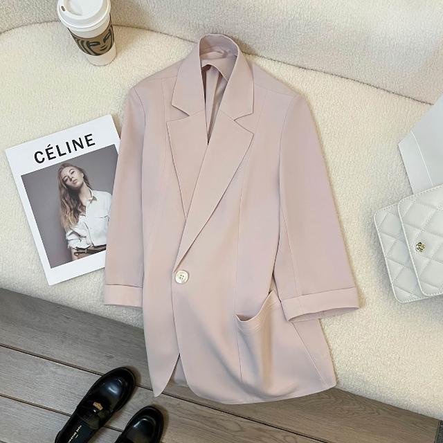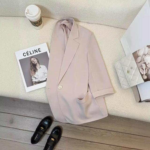 Seven七- 裸粉色薄款西裝外套女2026年夏季新款韓版休閑七分袖百搭氣質西服