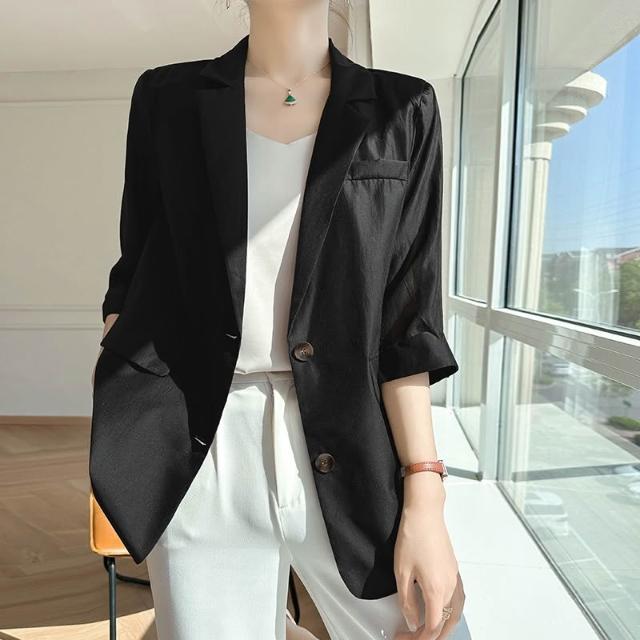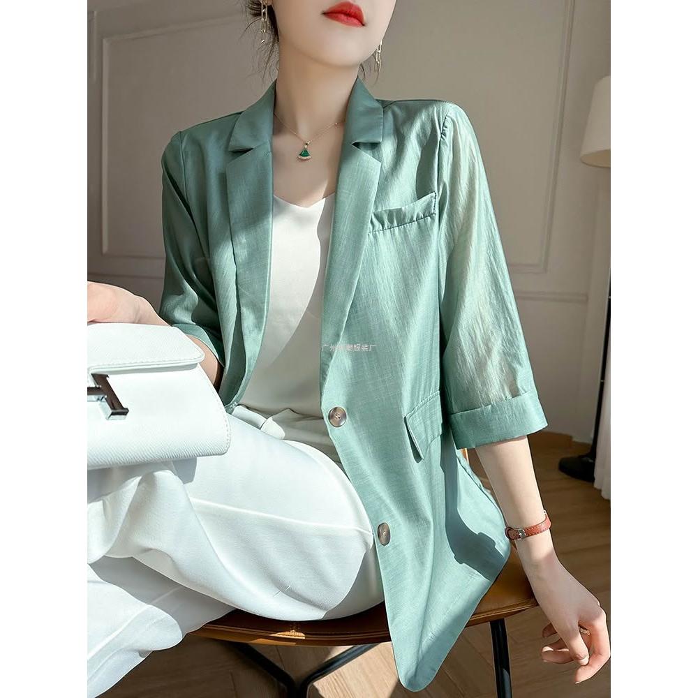 Seven七- 天絲薄款西裝外套女夏季2026新款休閑高級設計感小眾女士西服上衣