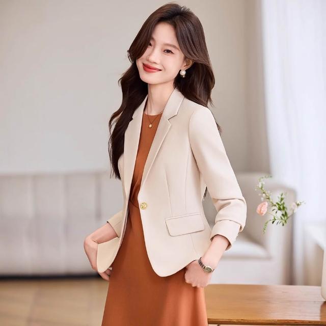 Seven七- 酒紅色西裝外套女2026新款春秋季休閑小個子連衣裙西服套裝兩件套