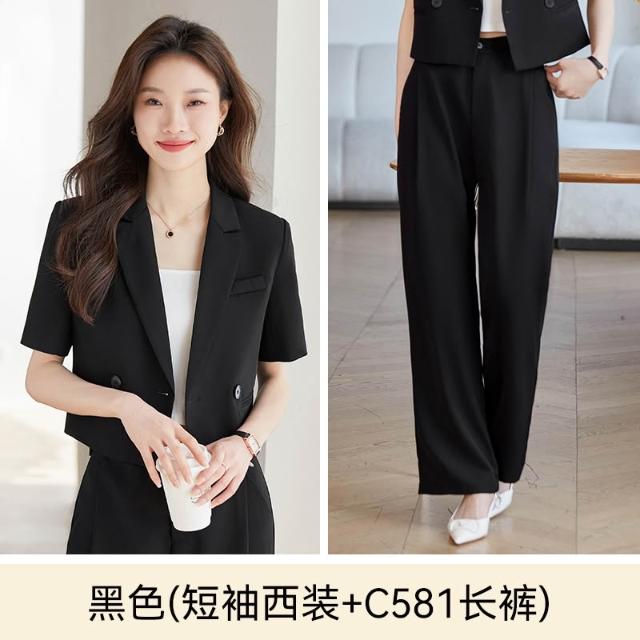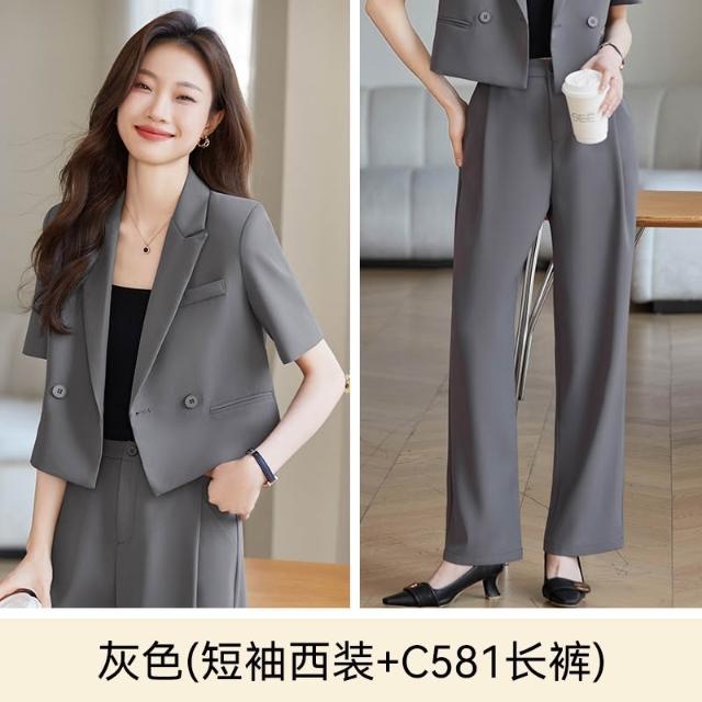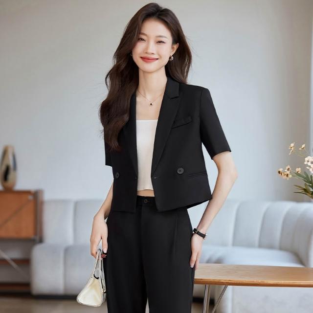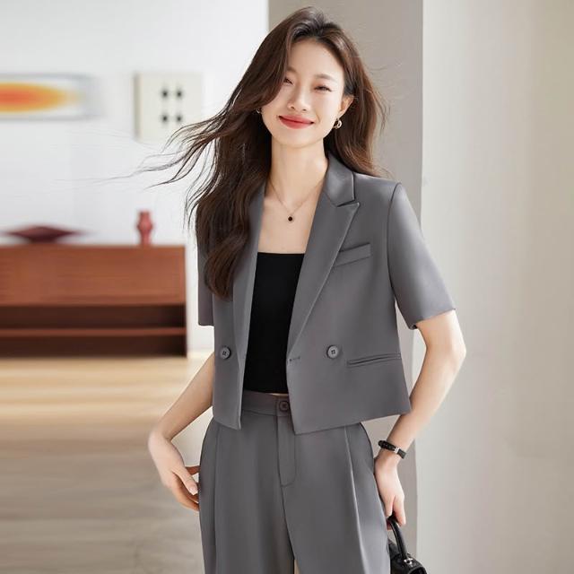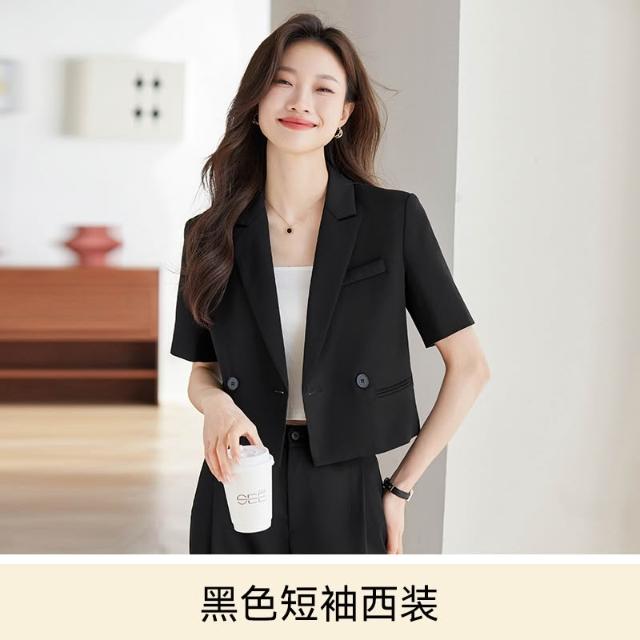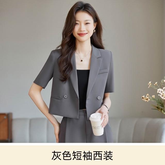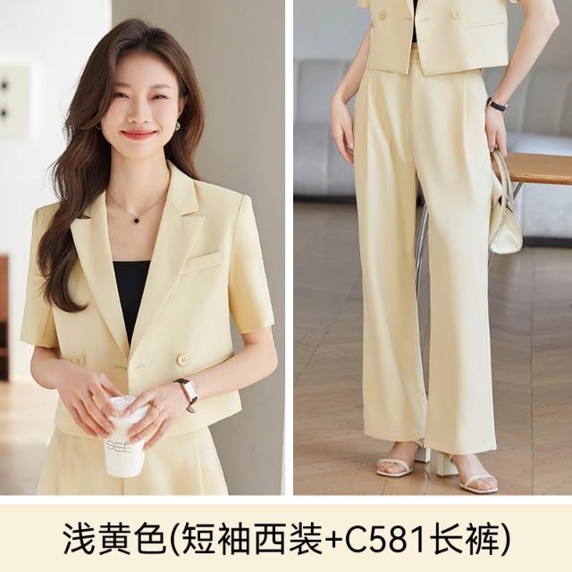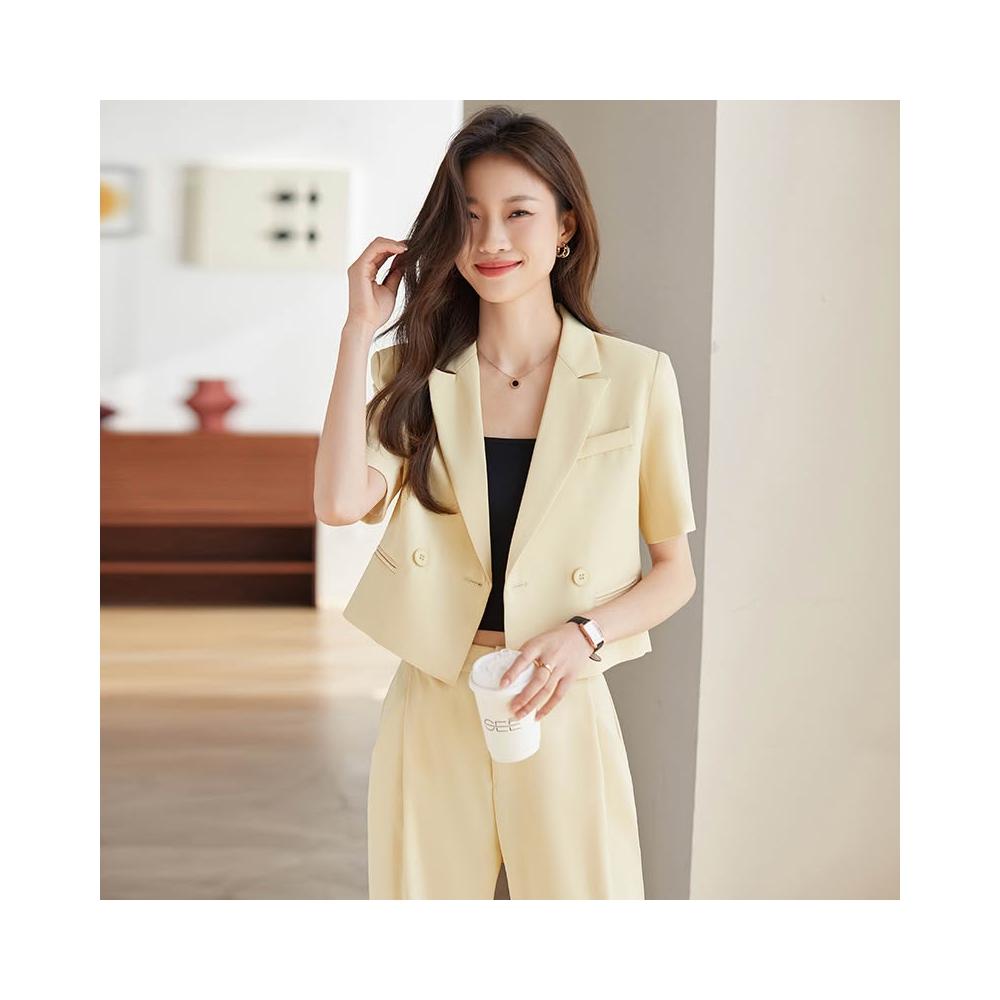 Seven七- 黃色短袖西裝外套女2026夏季新款正式場合職業裝短款時尚西服套裝