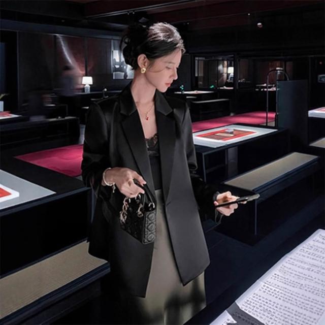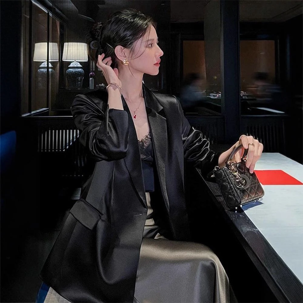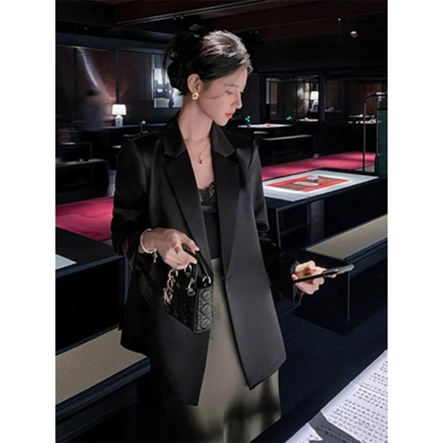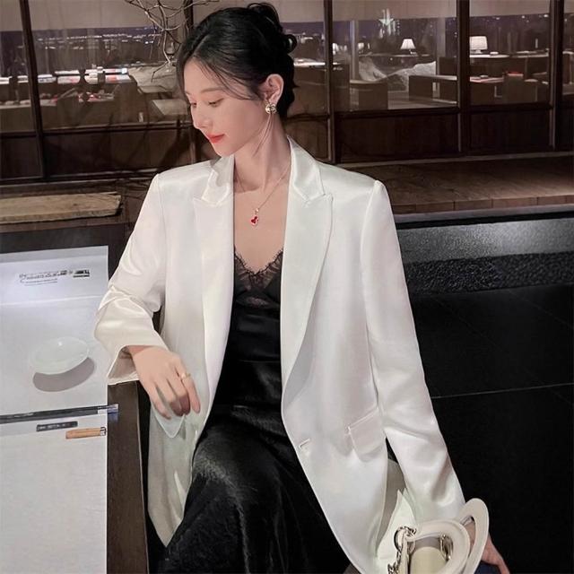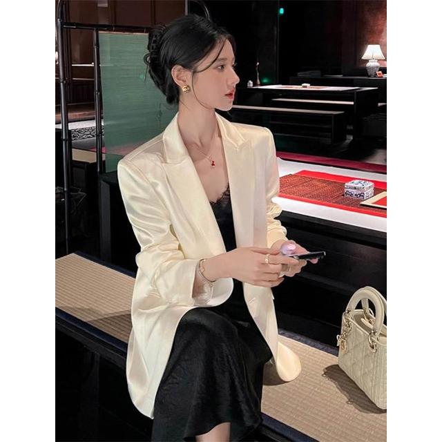 Seven七- 醋酸緞面小西裝外套女春夏季高級感長袖薄款絲滑休閑防曬西服上衣
