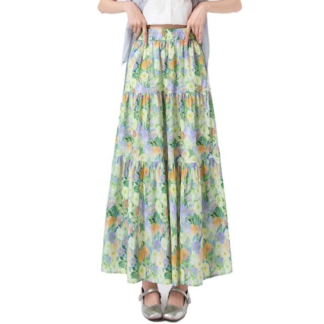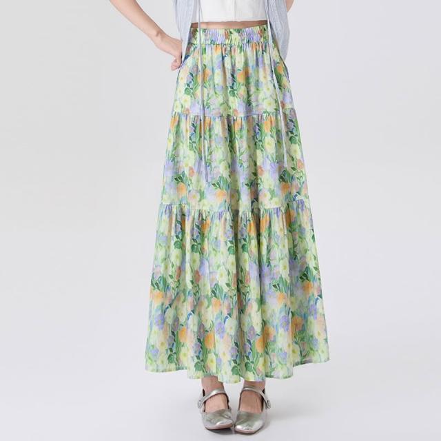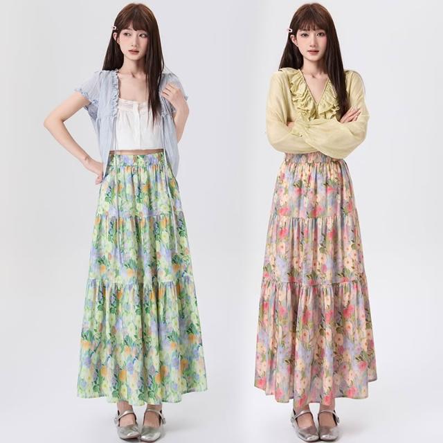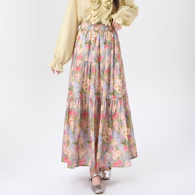 Seven七- .韓系浪漫油畫碎花半身裙女春夏高腰顯瘦A字中長款傘裙蛋糕裙
