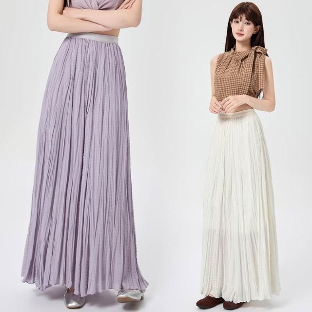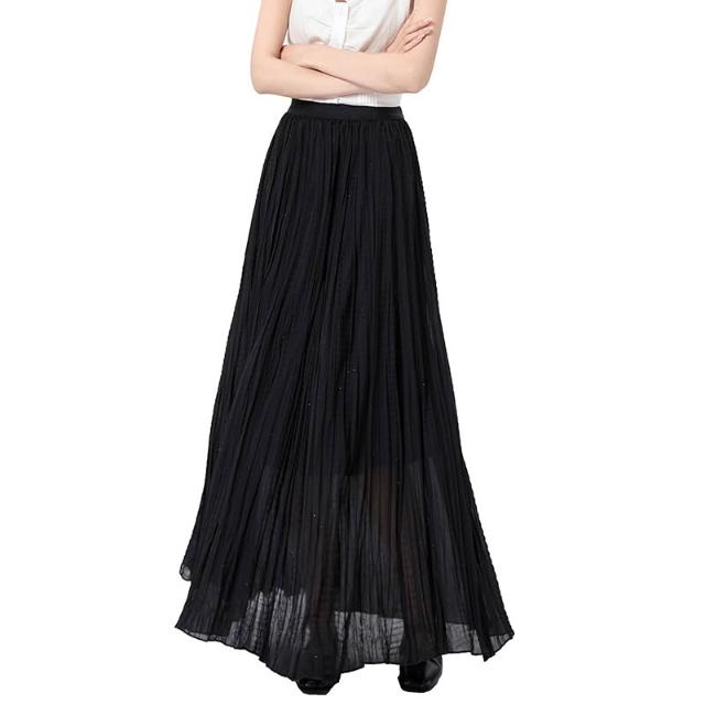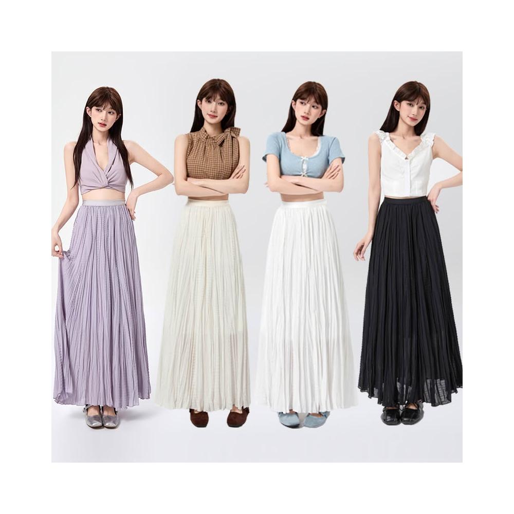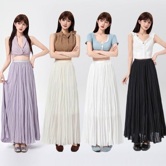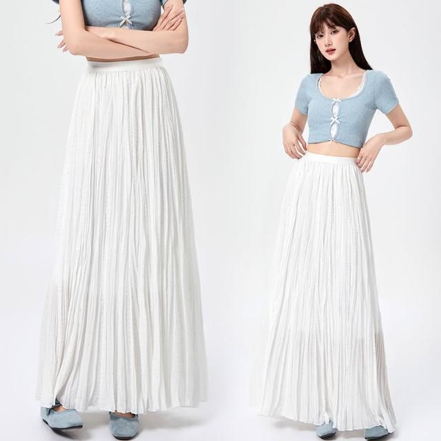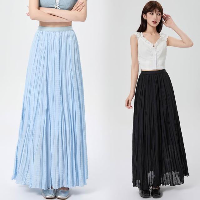 Seven七- .雪紡燙鉆百褶半身裙女2026春夏新款高腰顯瘦垂感A字大擺傘裙