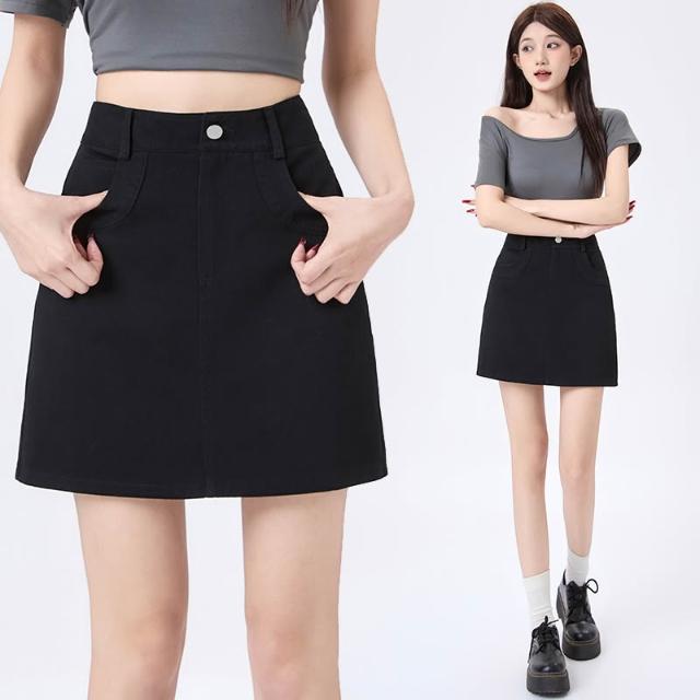 Seven七- .洗水牛仔A字半身裙女2026春夏新款高腰顯瘦包臀防走光短裙
