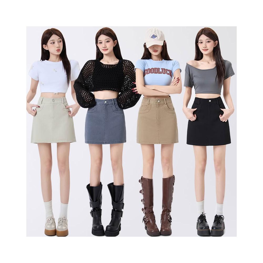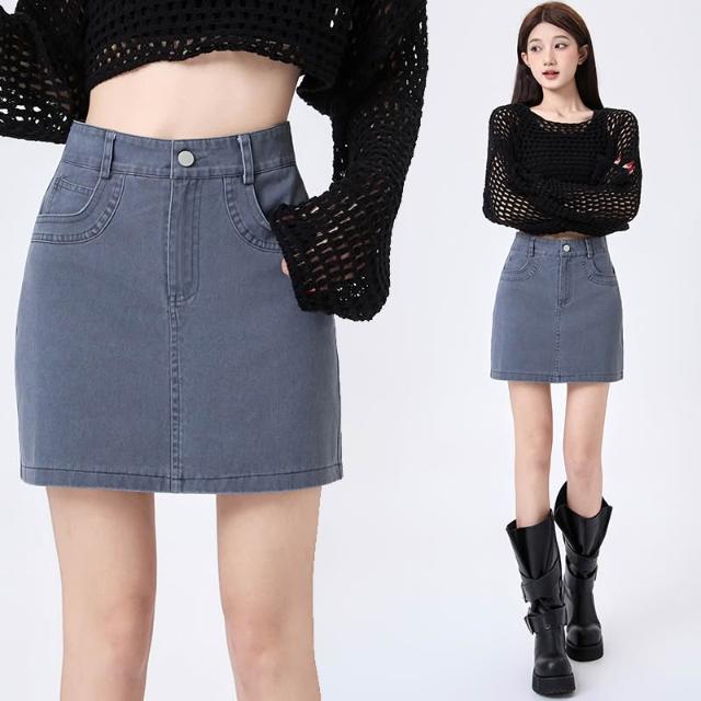 Seven七- .洗水牛仔A字半身裙女2026春夏新款高腰顯瘦包臀防走光短裙