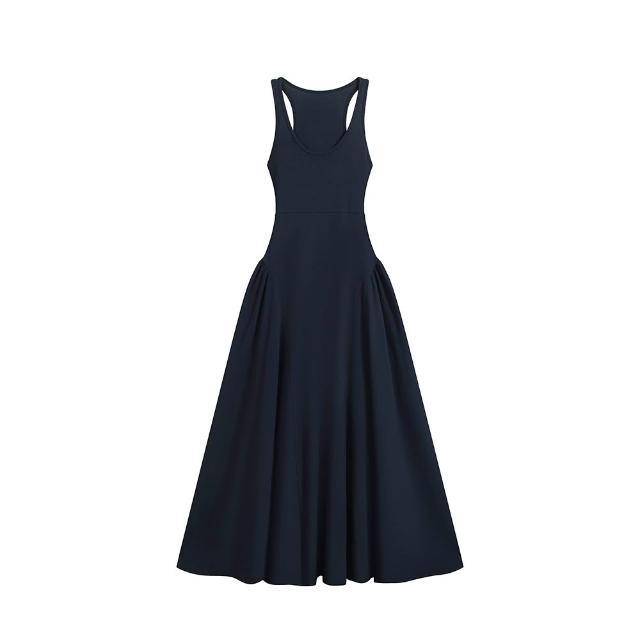 Seven七- .2026春夏新款露背镂空氣質修身收腰大擺長裙工字背心連衣裙女