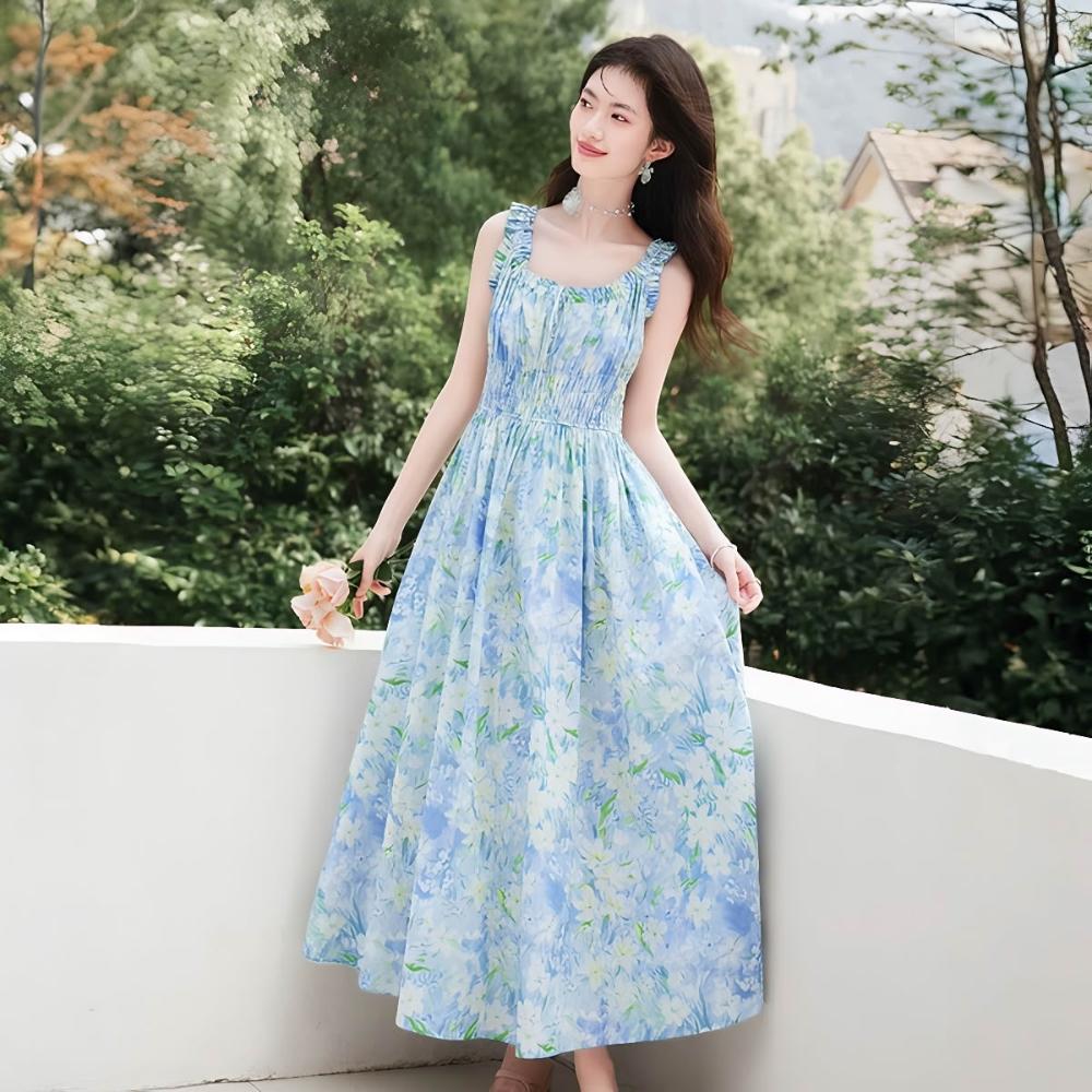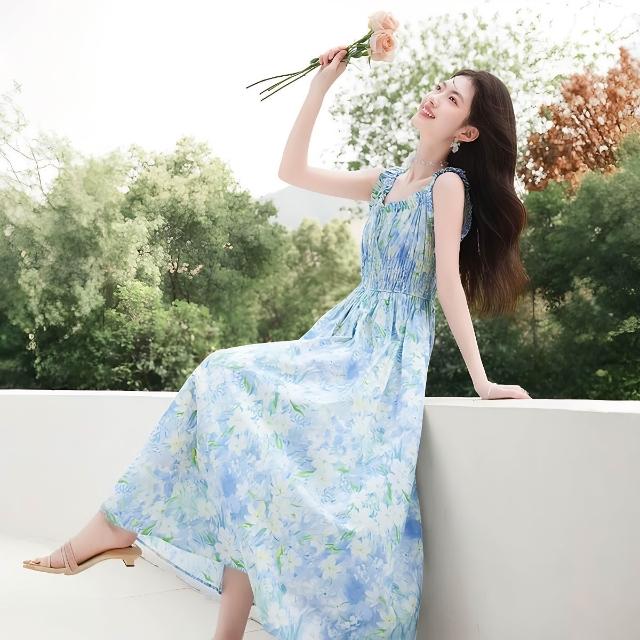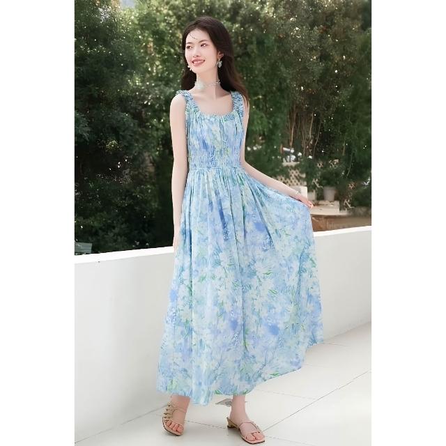 Seven七- 法式浪漫風氣質印花長款連衣裙女2026夏季新款絕美漂亮收腰A字裙
