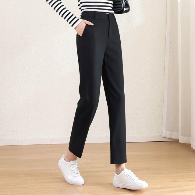 比比購 含發票 新上架 煙管褲女秋季2025新款高腰百搭休閑九分小直筒褲寬松顯瘦西裝褲子