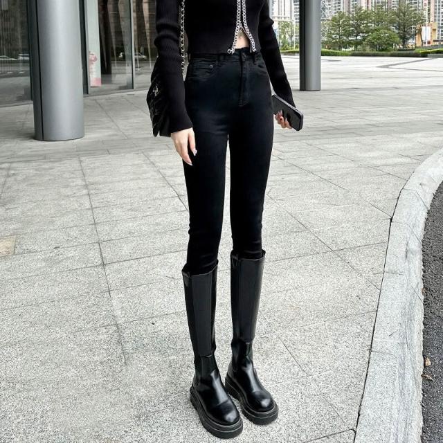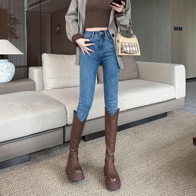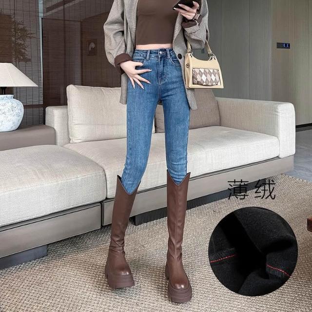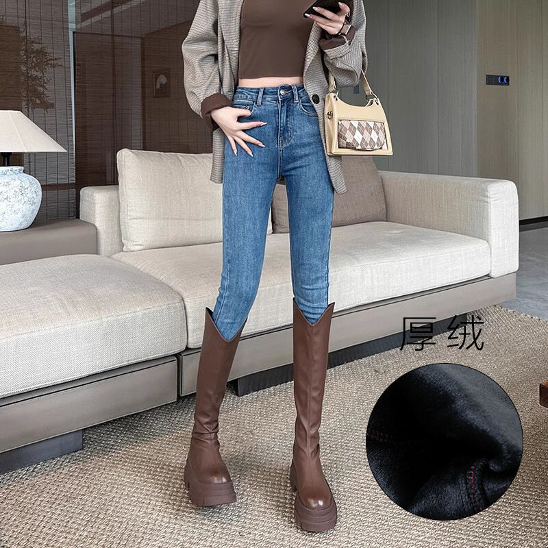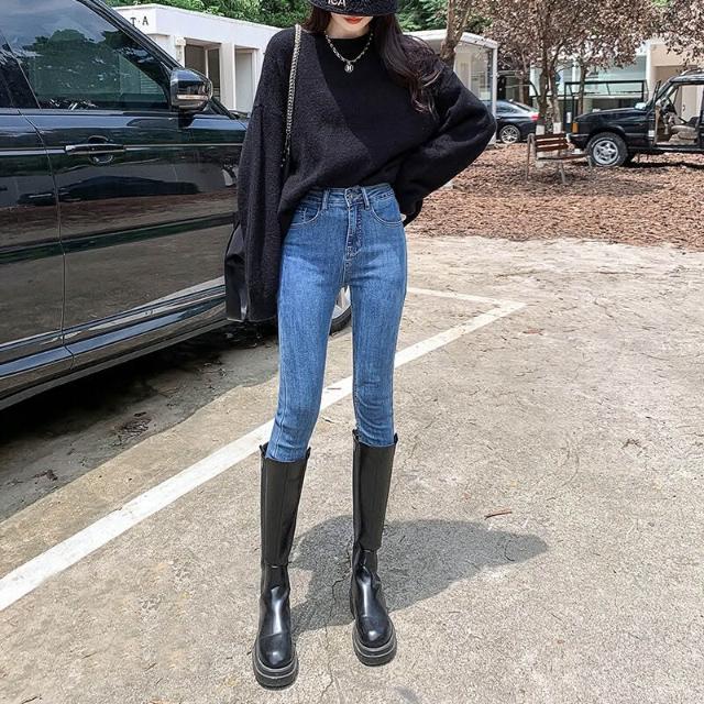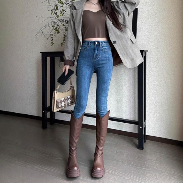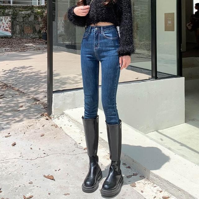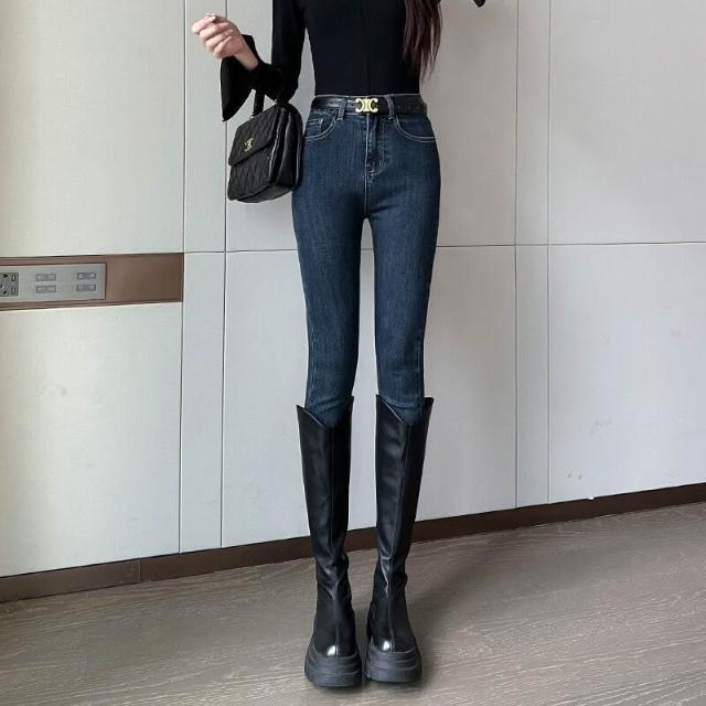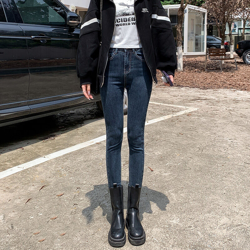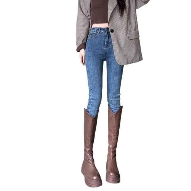 比比購 含發票 新上架 復古藍牛仔褲女2025春秋新款高腰修身緊身顯瘦小個子小腳鉛筆褲子