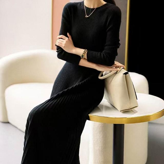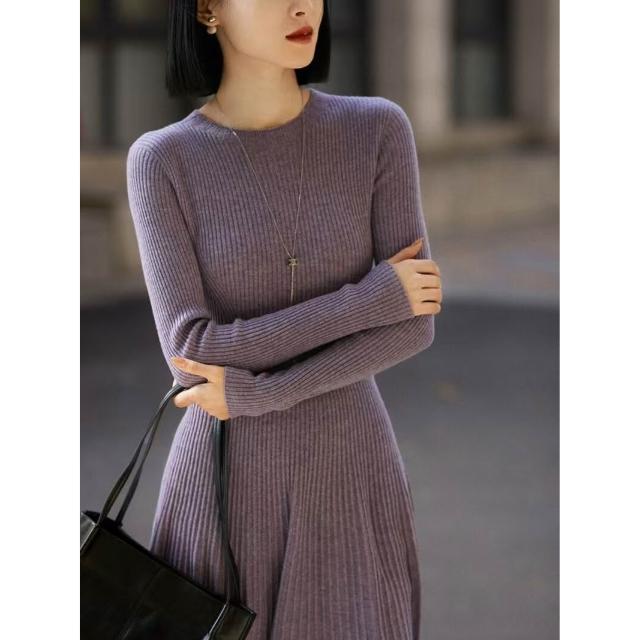 比比購 新上架 含發票 淑女2025新款秋冬100羊毛連衣裙子女半高領法式氣質收腰顯瘦長裙