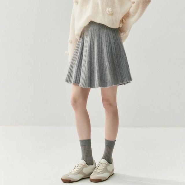 比比購 新上架 含發票 減齡親膚山羊絨半身短裙女針織A字百褶裙2025秋冬新款羊毛小短裙
