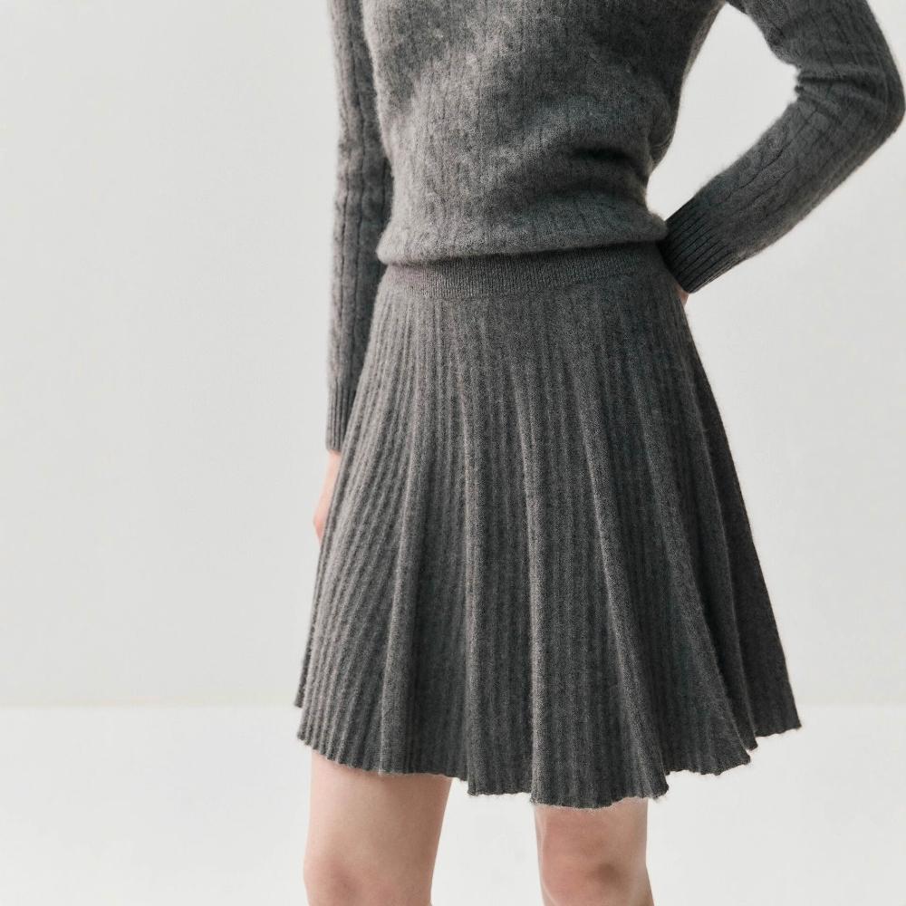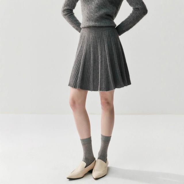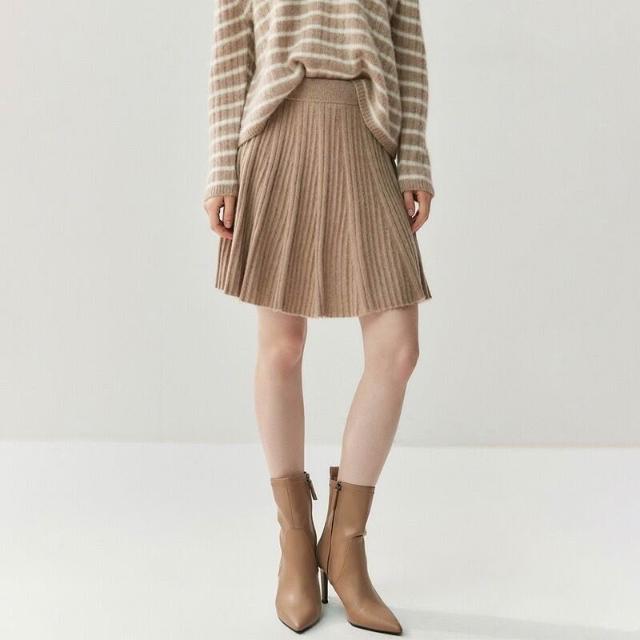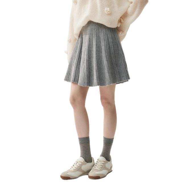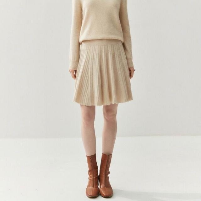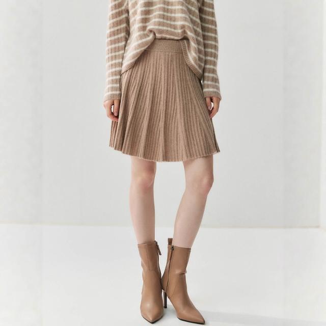 比比購 新上架 含發票 減齡親膚山羊絨半身短裙女針織A字百褶裙2025秋冬新款羊毛小短裙