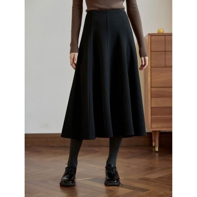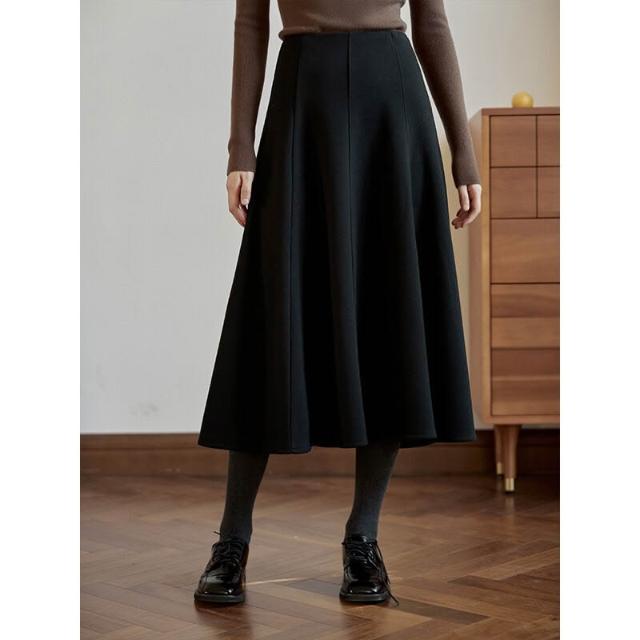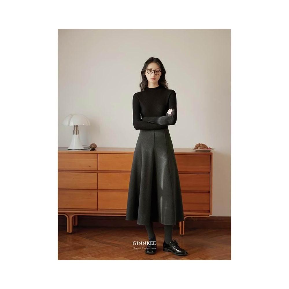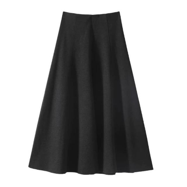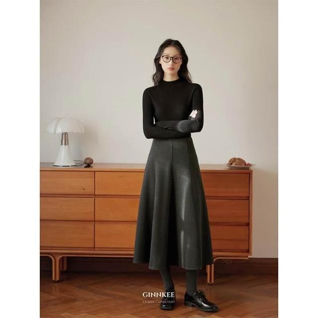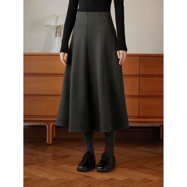 比比購 新上架 含發票 醋酸羊毛針織毛呢半身裙a字裙傘裙女秋冬復古灰色魚尾長裙