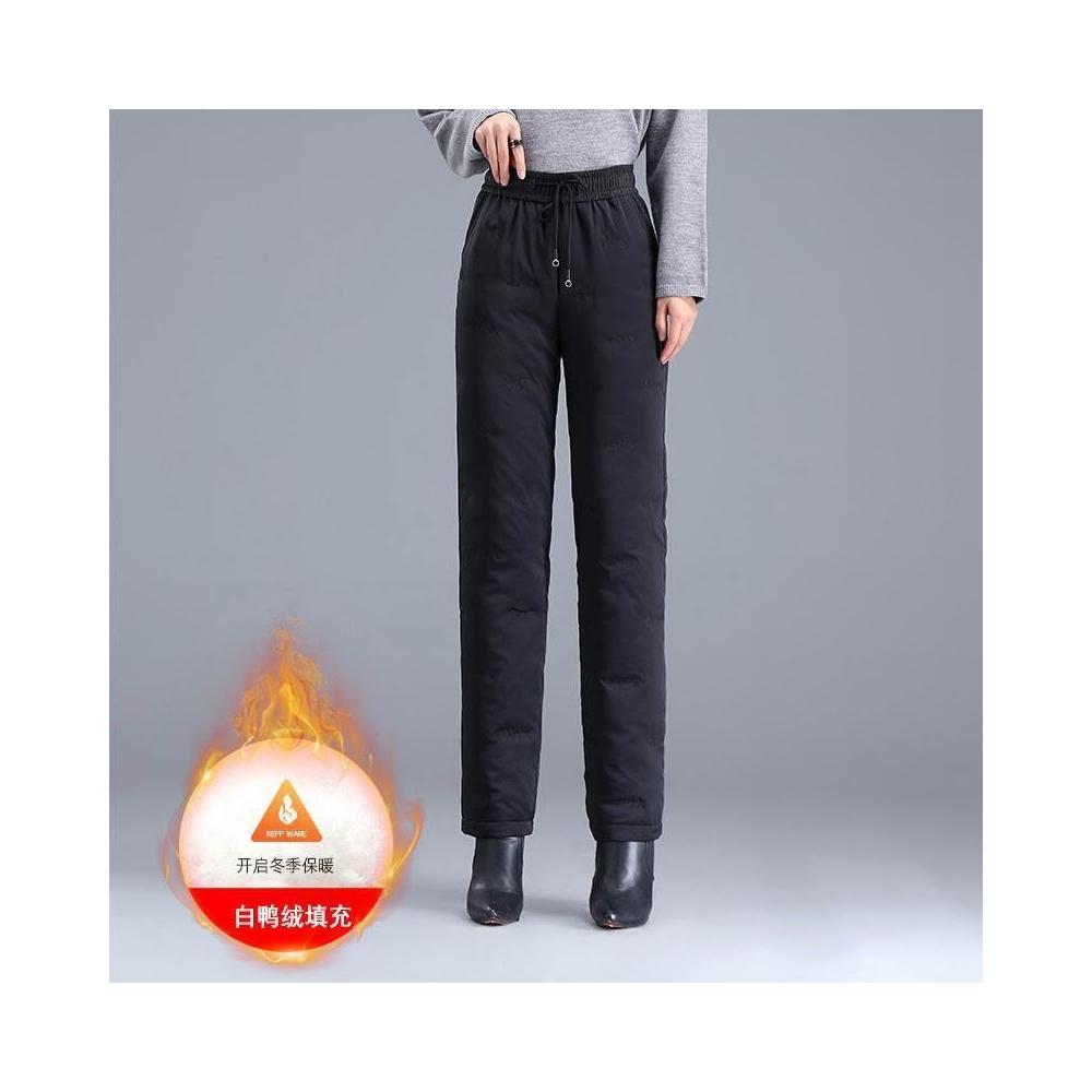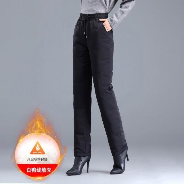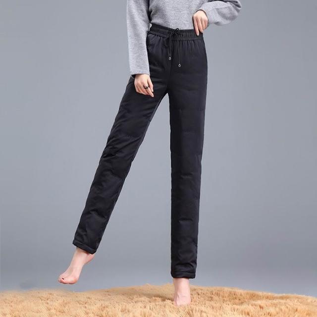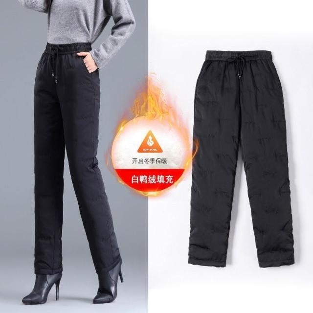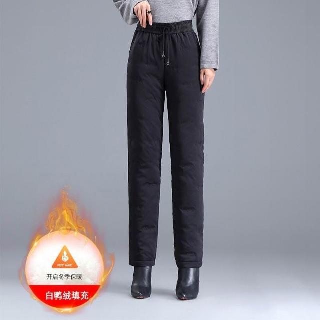 比比購 新上架 含發票 羽絨褲女外穿冬季新款白鴨絨保暖直筒褲黑色高腰加厚寬松棉褲