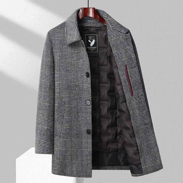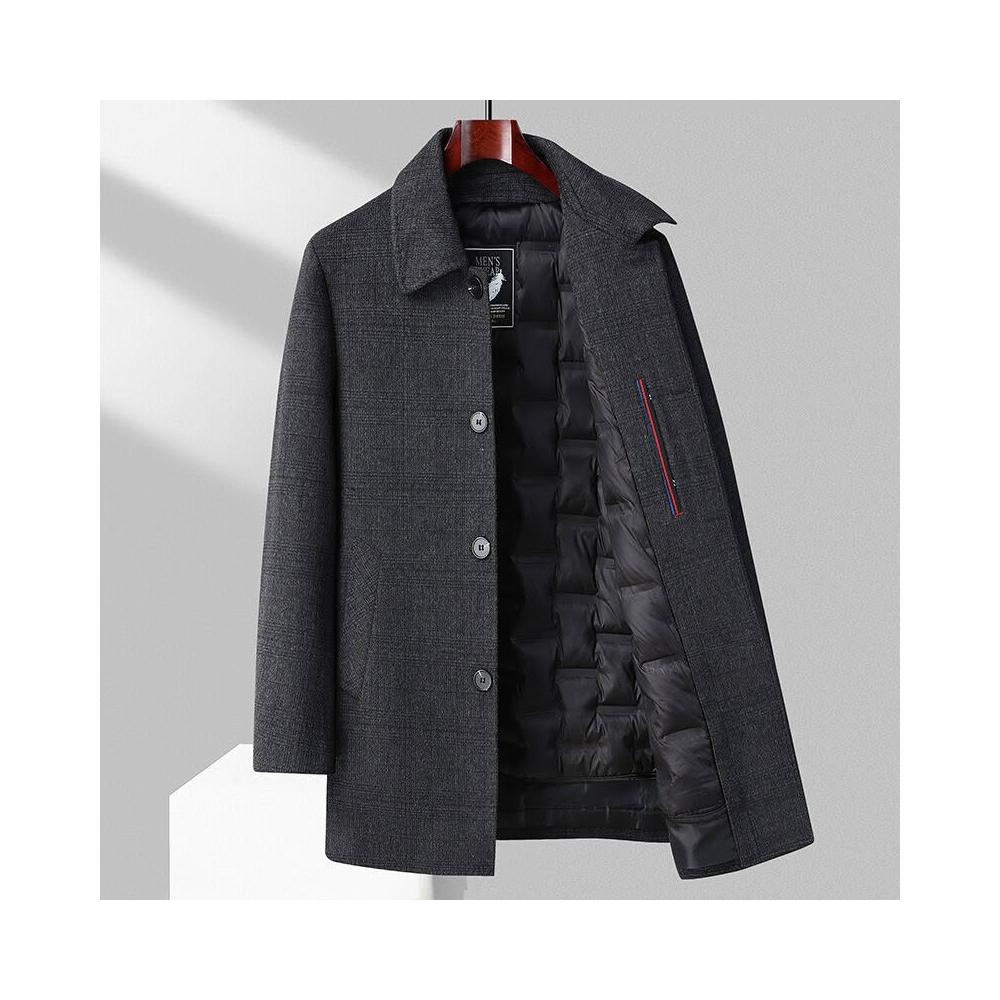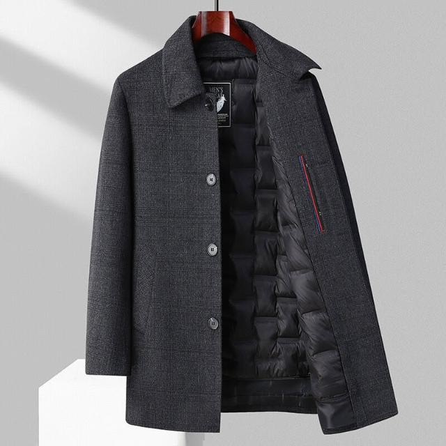 比比購 新上架 含發票 羊毛大衣男士中長款秋冬季加厚保暖羽絨服內膽羊絨呢子風衣外套男