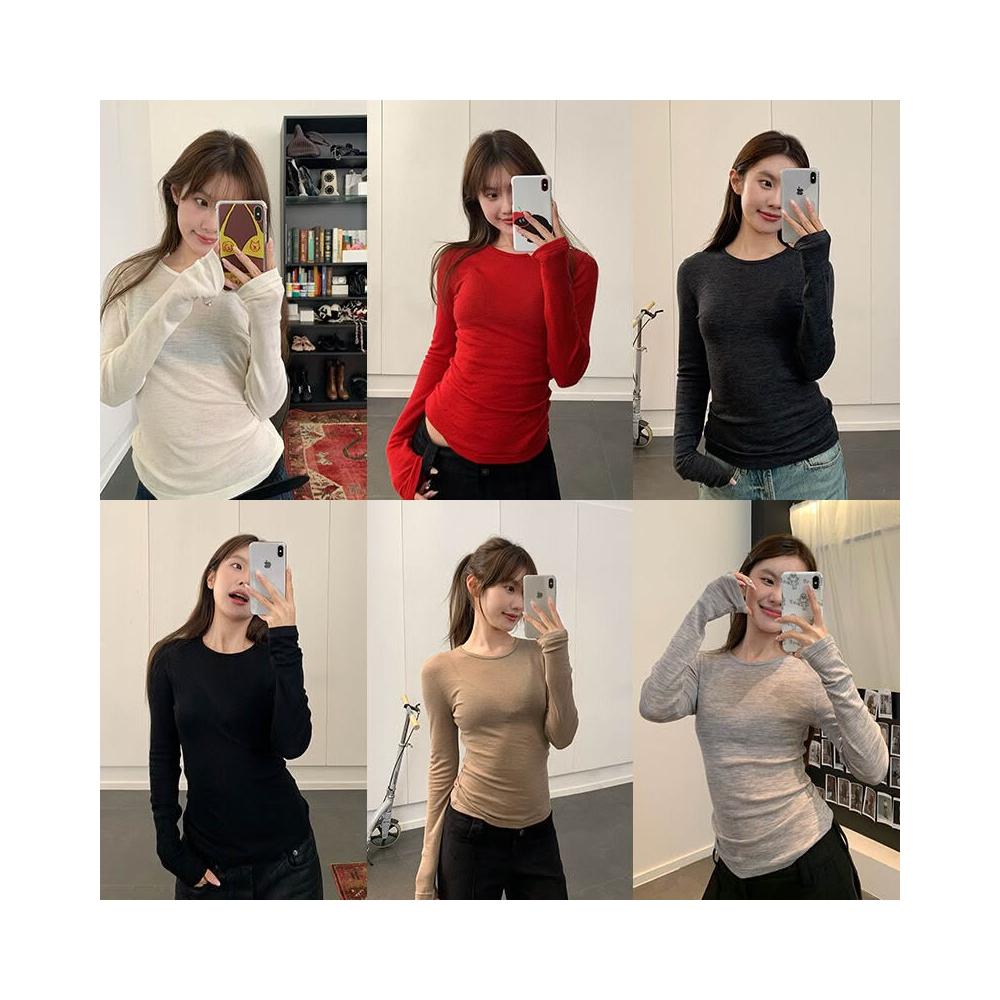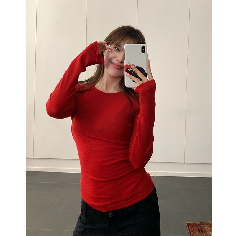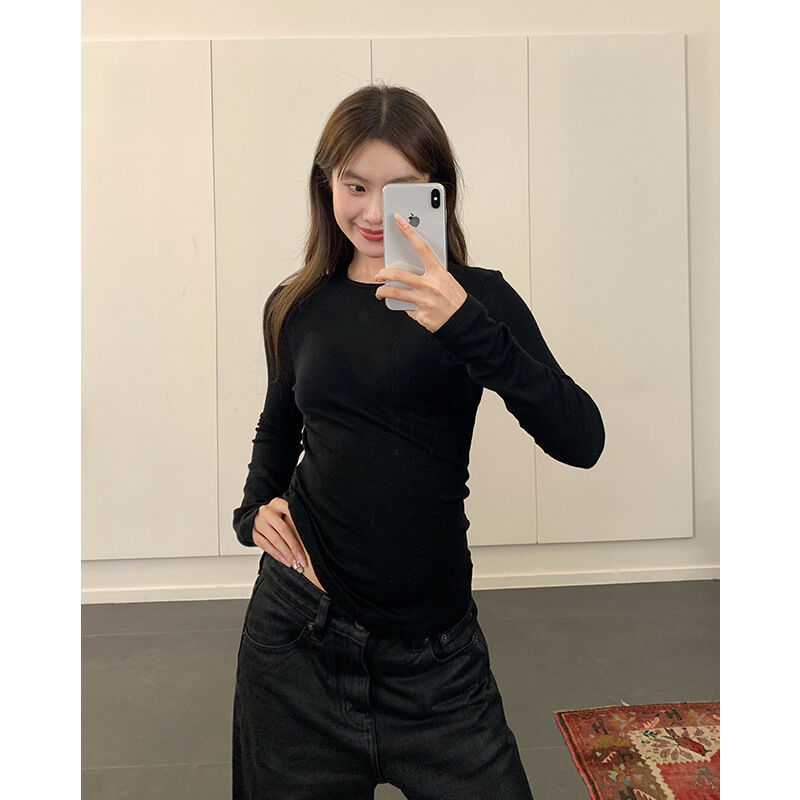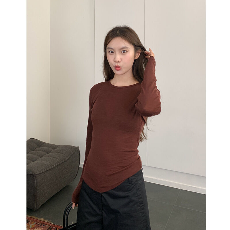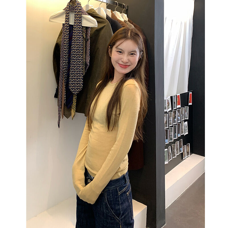 比比購 新上架 含發票 楠濤精紡美利奴羊毛打底衫女秋冬修身顯瘦休閑針織衫內搭長袖t恤