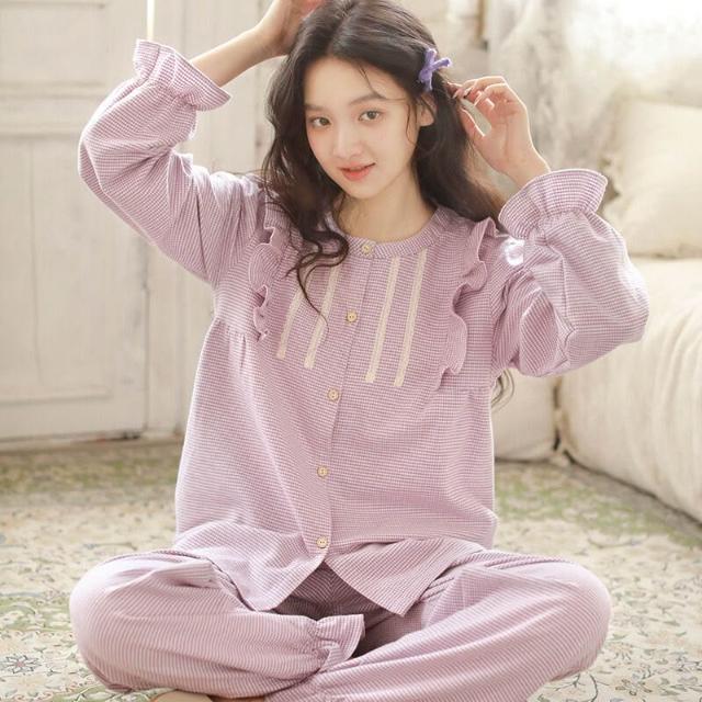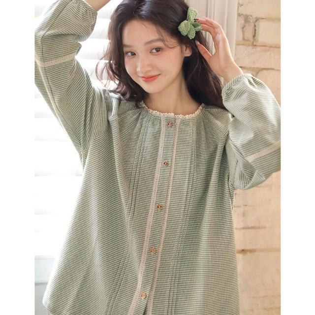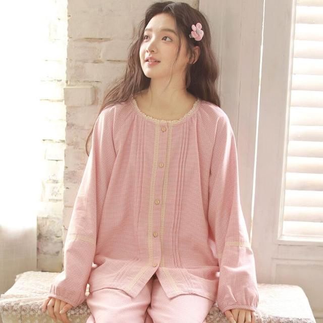 比比購 秋冬季睡衣女純棉磨毛高級感可外穿女士甜美圓領睡衣家居服長袖套