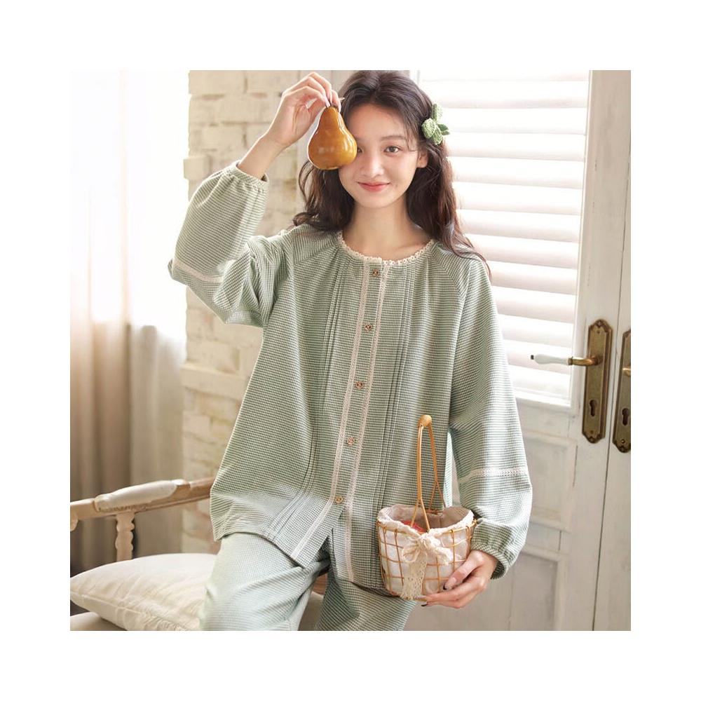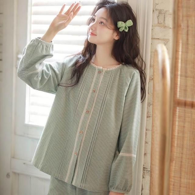 比比購 秋冬季睡衣女純棉磨毛高級感可外穿女士甜美圓領睡衣家居服長袖套