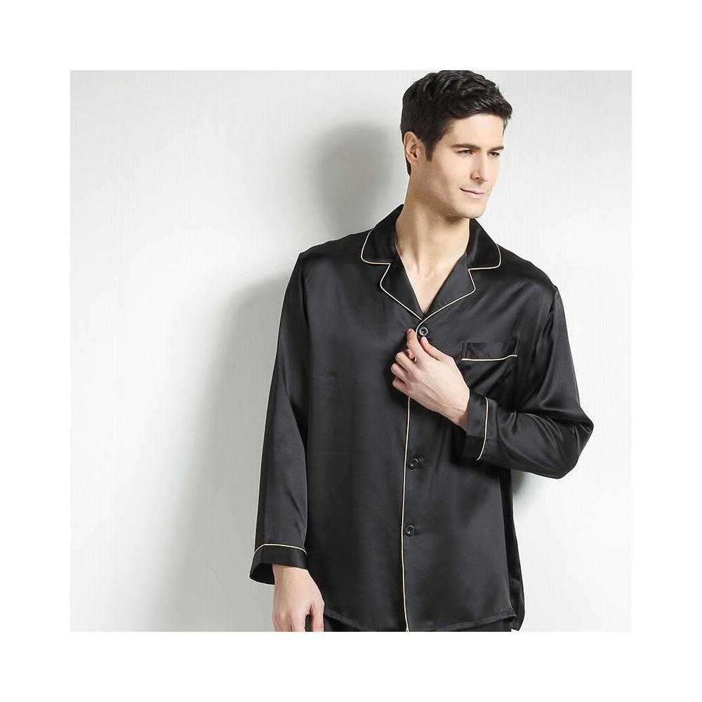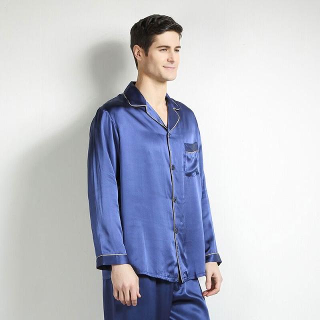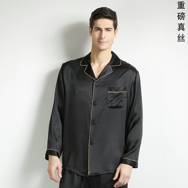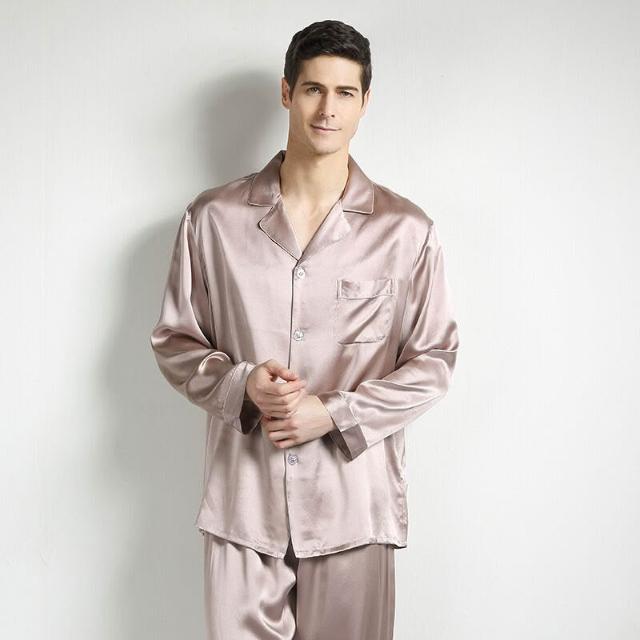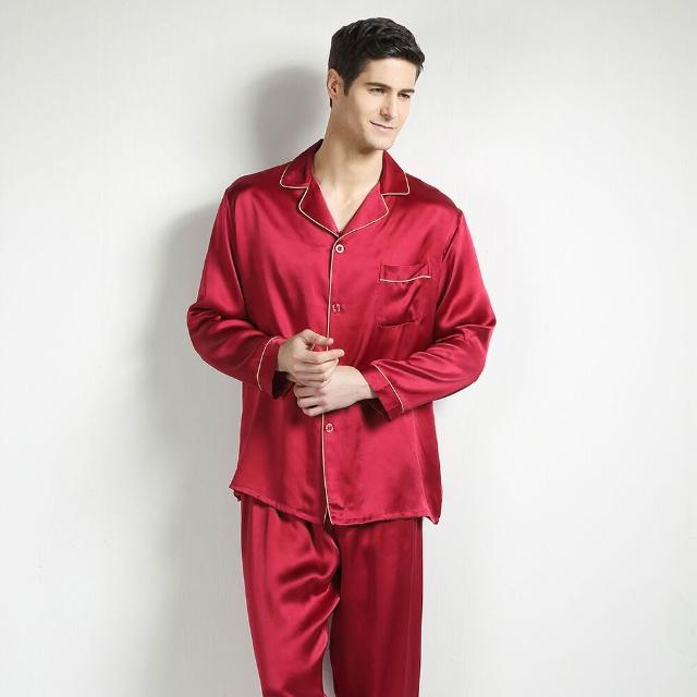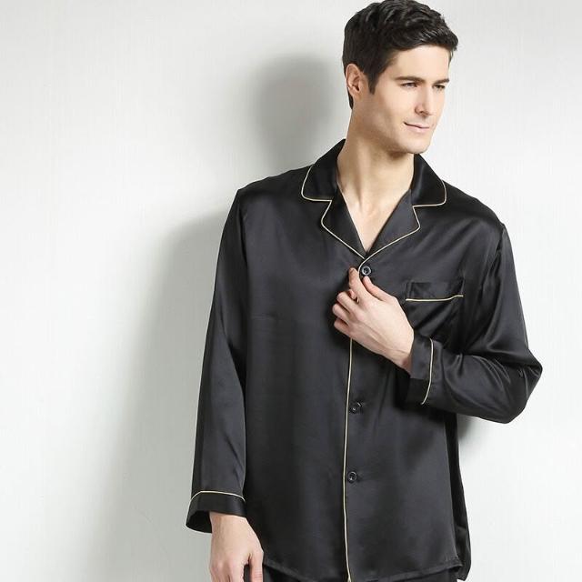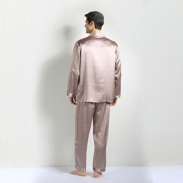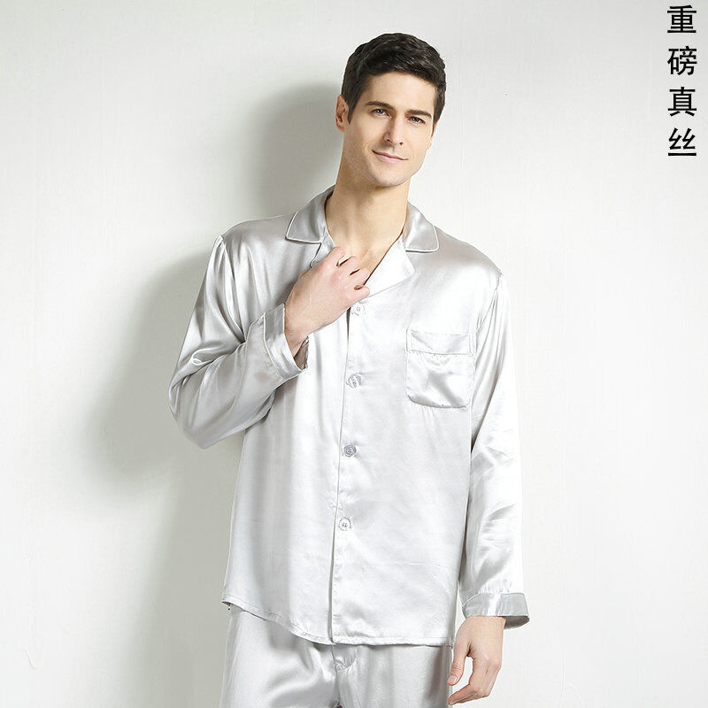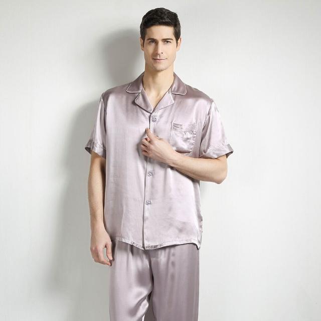 比比購 新上架 含發票 重磅真絲桑蠶絲睡衣男式中青年春秋大碼絲綢短袖長褲家居兩件套新
