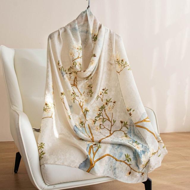 比比購 新上架 含發票 絲巾韓系氛圍感2025年春夏季新款印花輕薄桑蠶絲絲巾女百搭大披肩