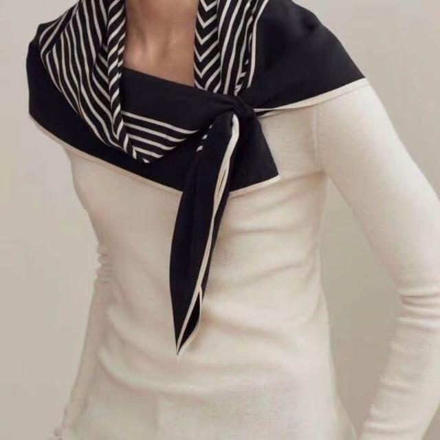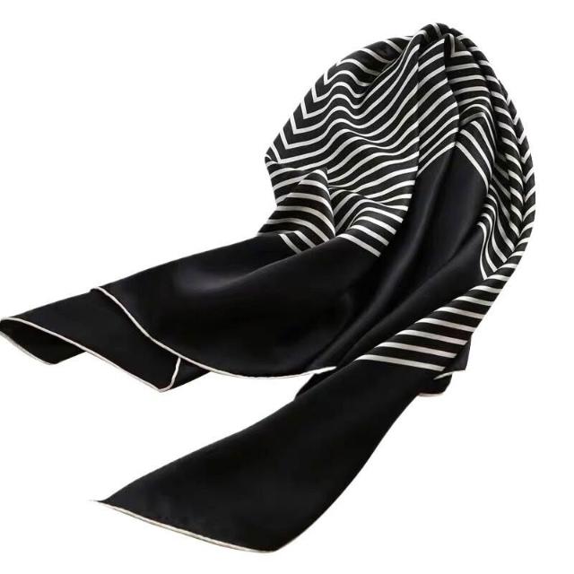 比比購 新上架 含發票 條紋圖案大方巾90真絲絲巾女100桑蠶絲圍巾百搭手工手卷邊圍巾