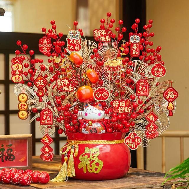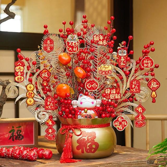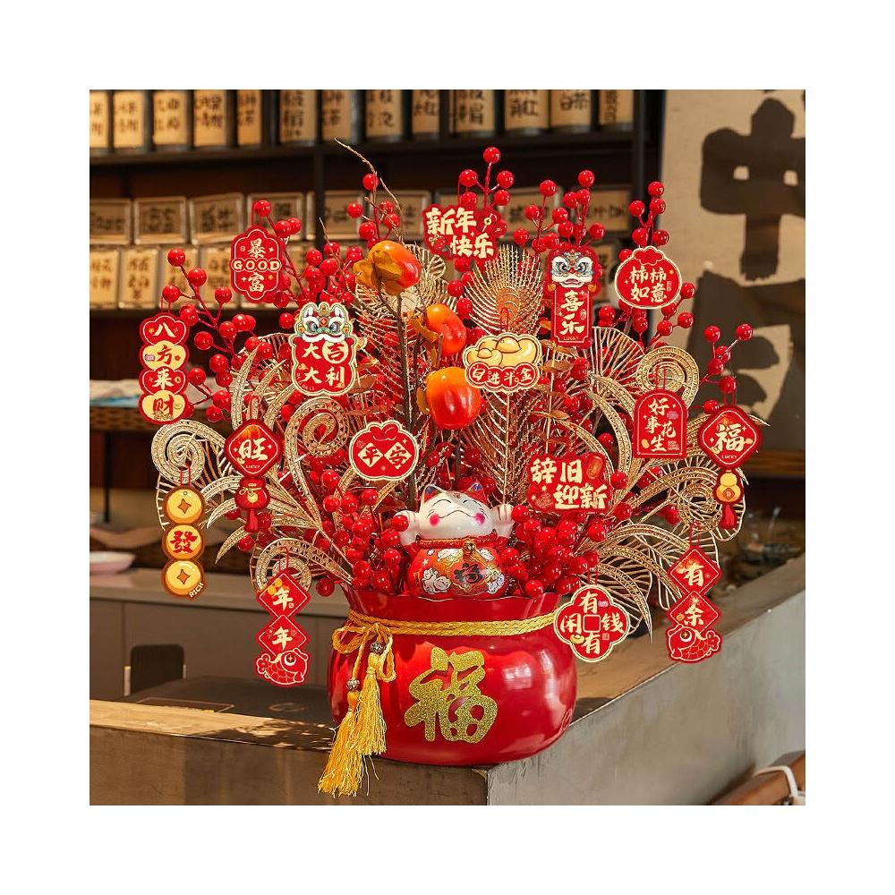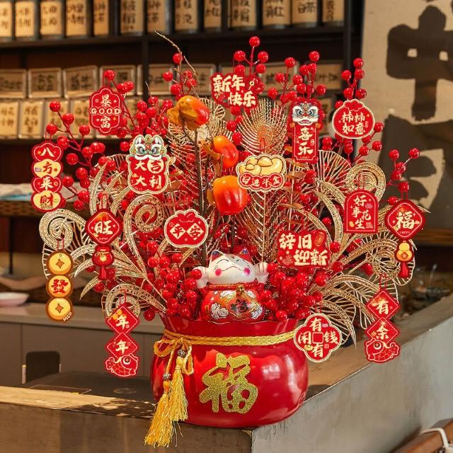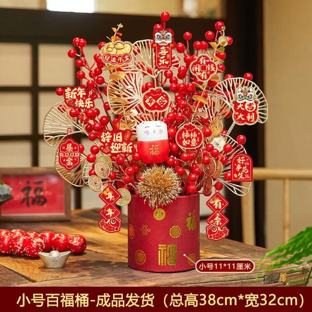 比比購 新上架 含發票 馬年2026新年裝飾品春節發財樹福桶擺件過年掛飾元旦氛圍場景布置