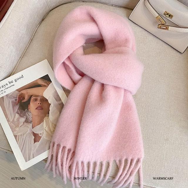 比比購 新上架 含發票 2024冬季新款純色羊毛混紡流蘇圍巾女粉色可愛百搭休閑風披肩圍脖