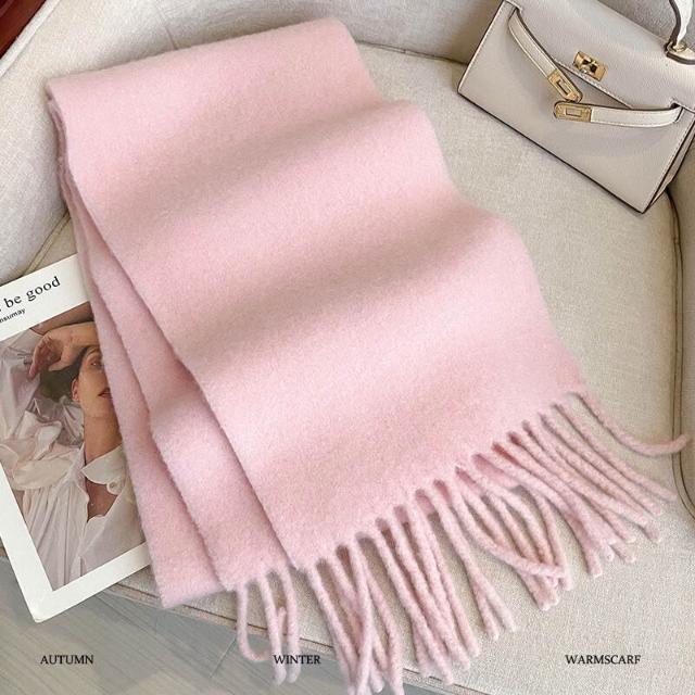 比比購 新上架 含發票 2024冬季新款純色羊毛混紡流蘇圍巾女粉色可愛百搭休閑風披肩圍脖