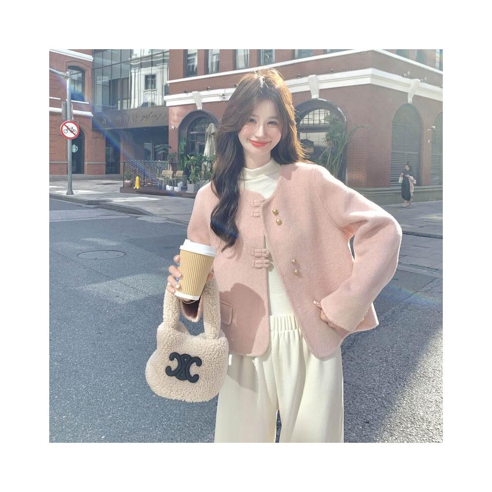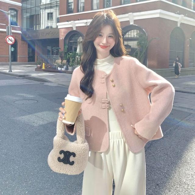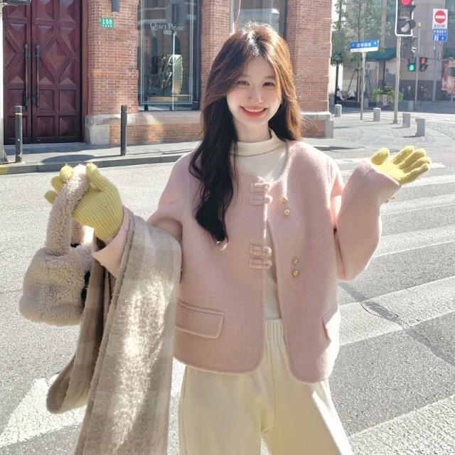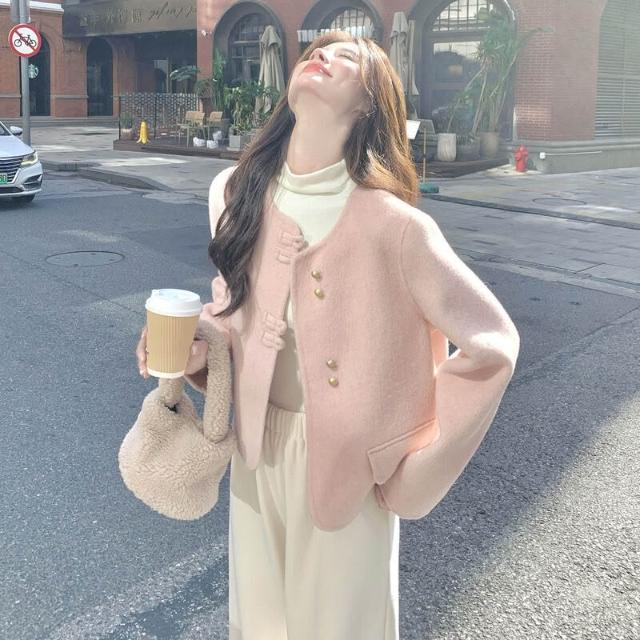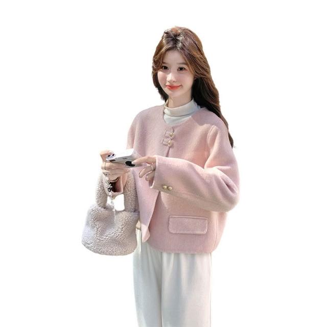 比比購 小香風甜美雙面呢羊毛外套女2025秋冬季新款呢子大衣氣質顯瘦上衣