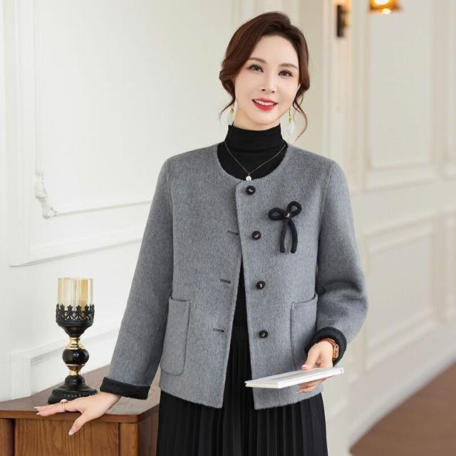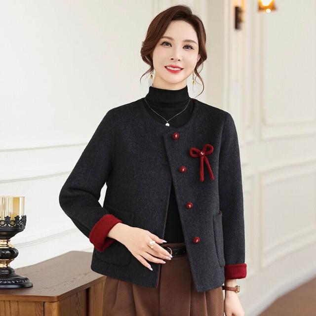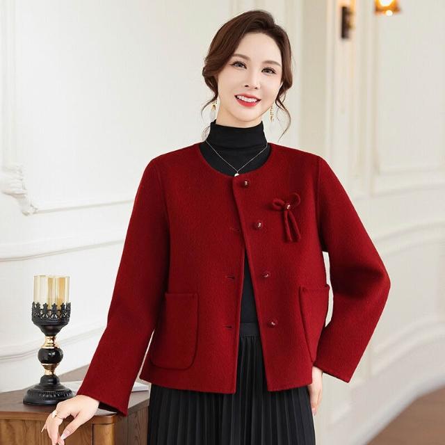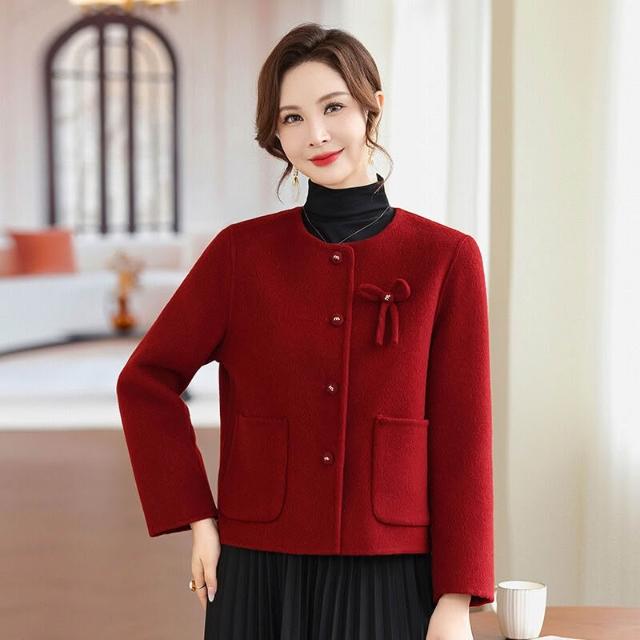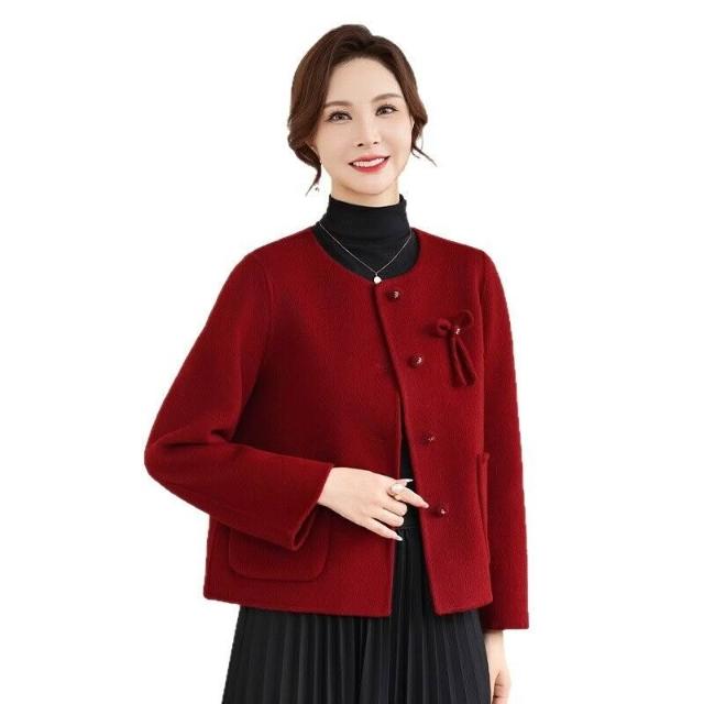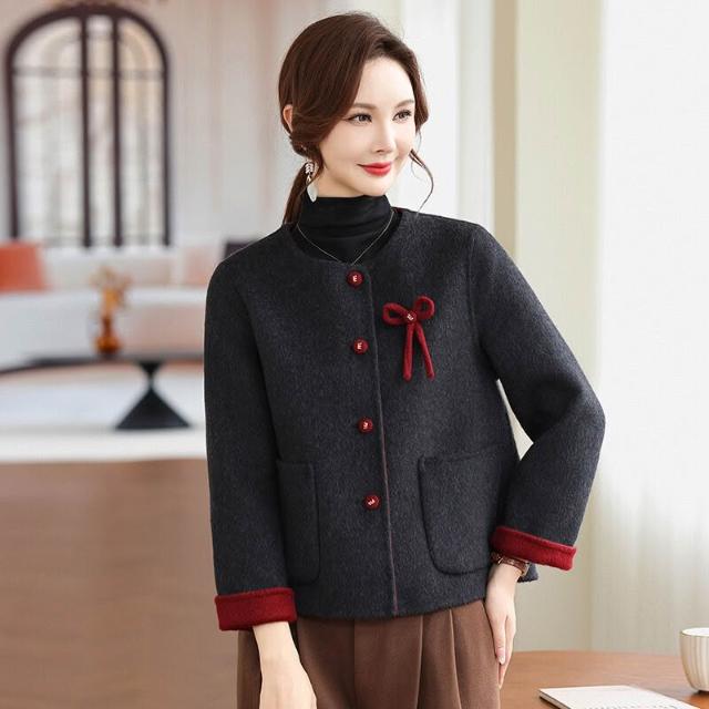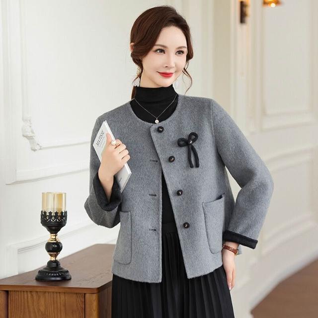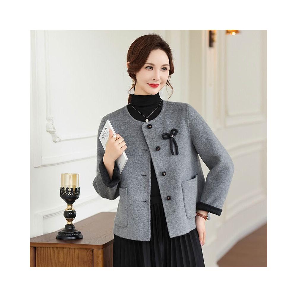 比比購 小香風冬季短款雙面毛呢外套女2025新款簡約時尚圓領時尚百搭大衣