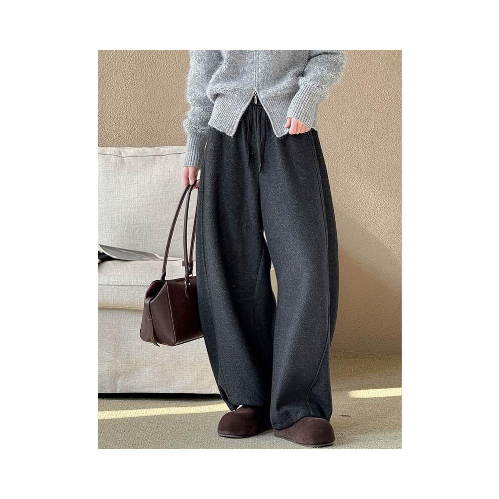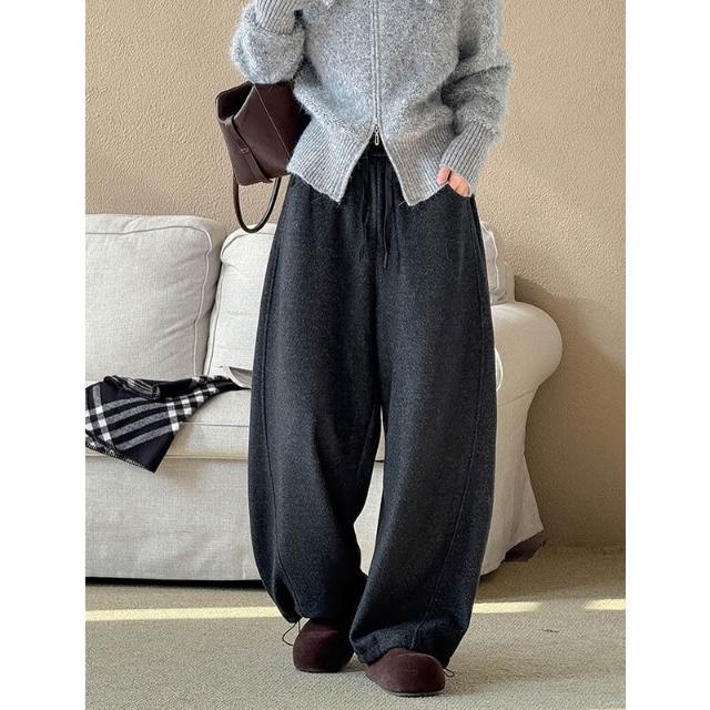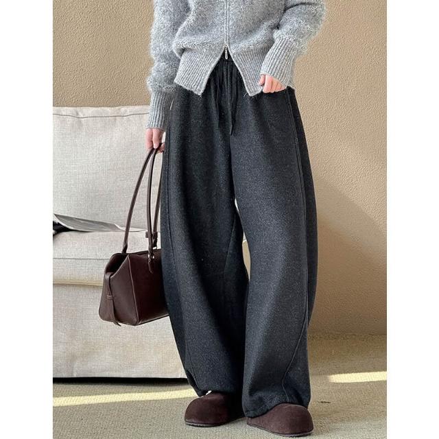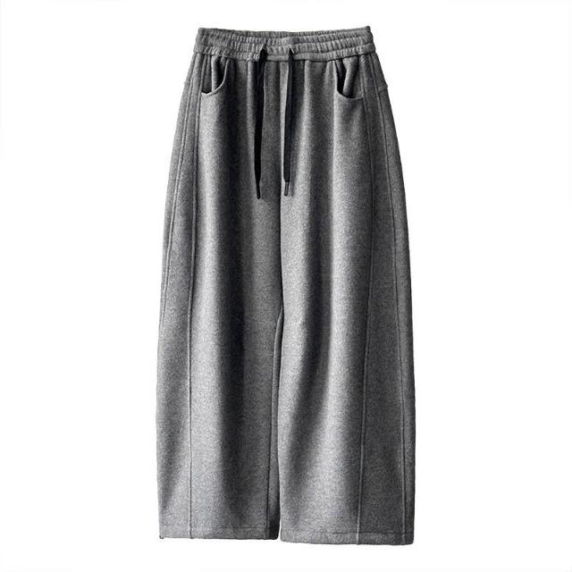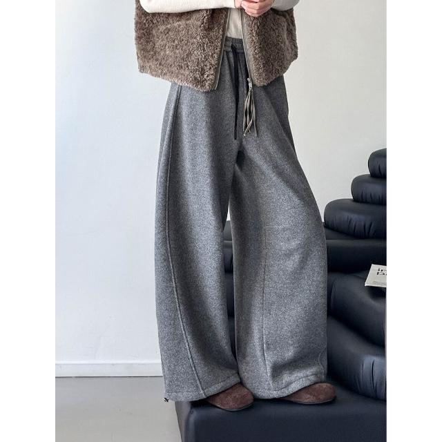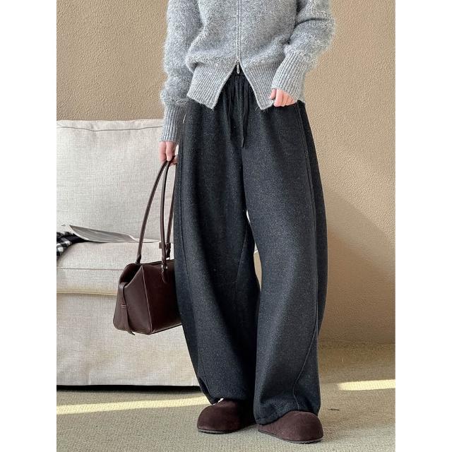 比比購 橘芷冬季新款簡約風百搭褲子加絨加厚闊腿褲冬天輕松過冬5902 洋裝 寬褲