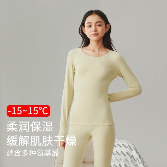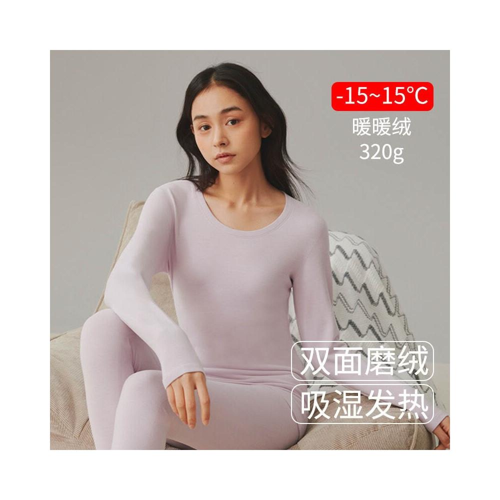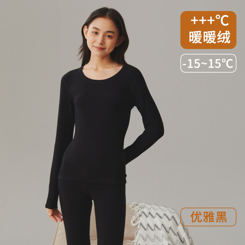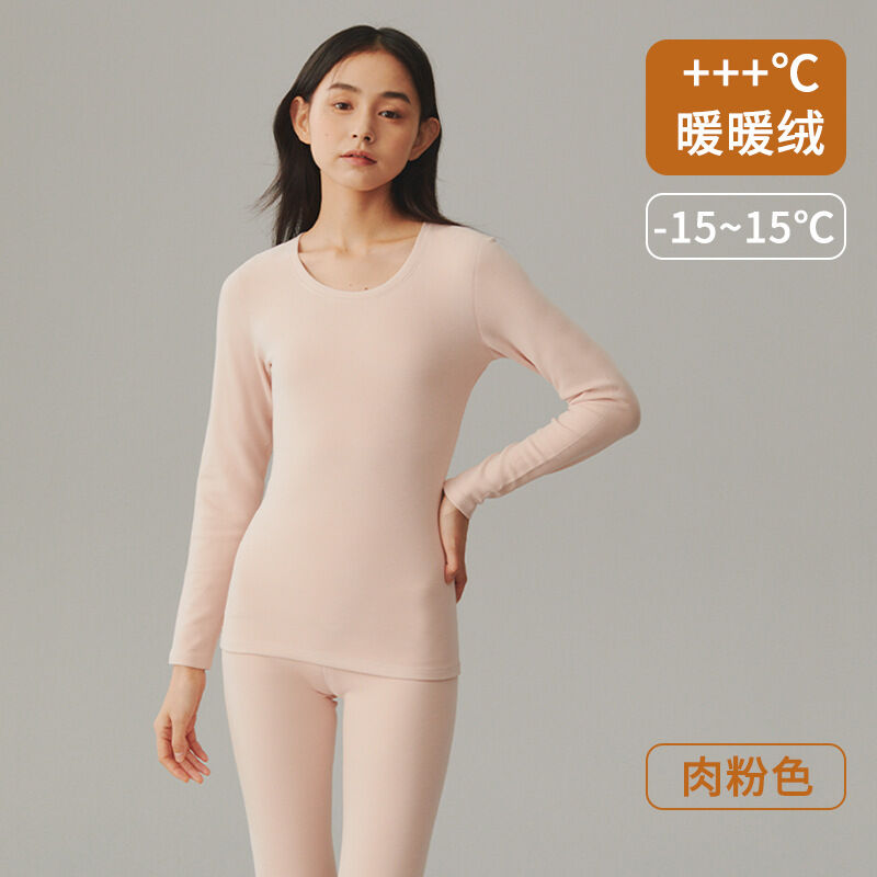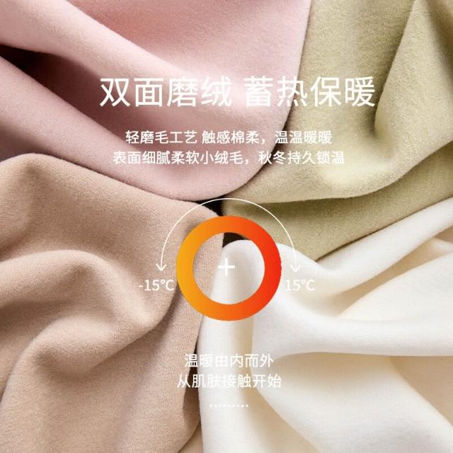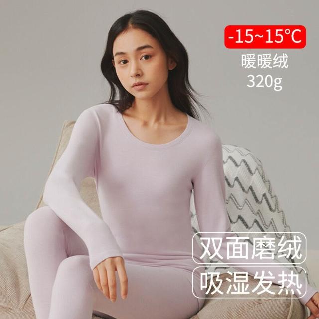 比比購 保暖內衣女士德絨秋衣秋褲加絨加厚圓領發熱修身磨毛打底套裝冬季 毛衣