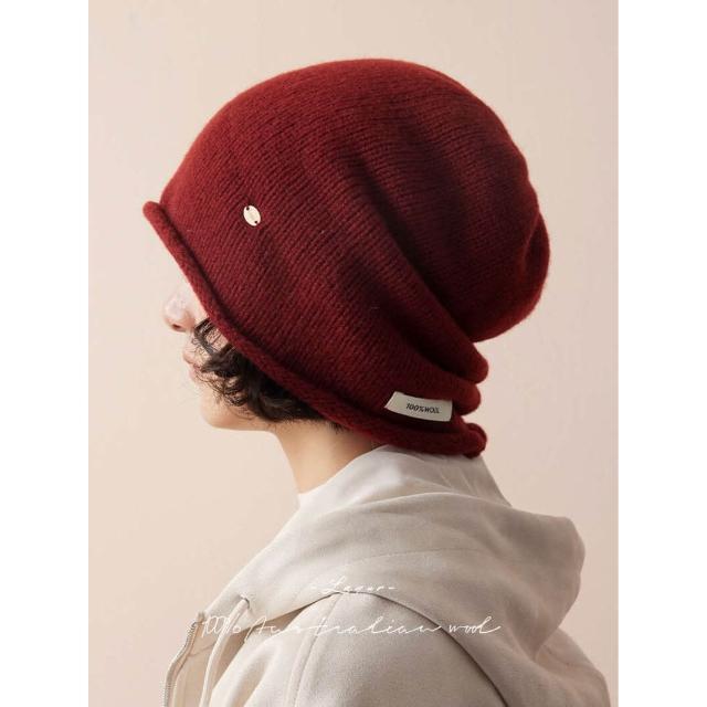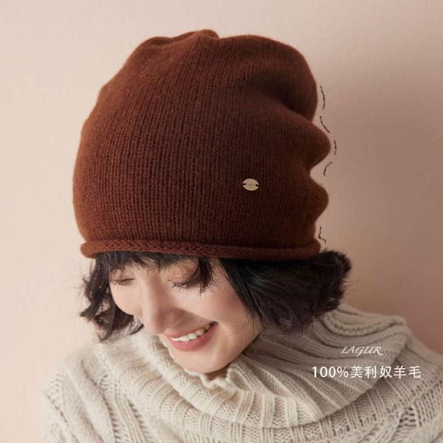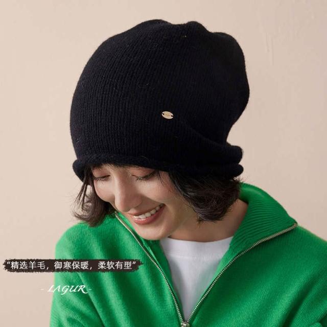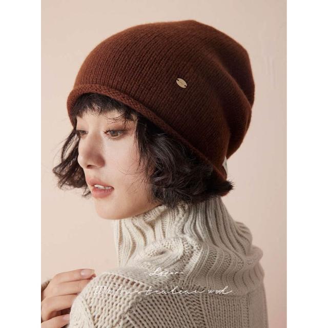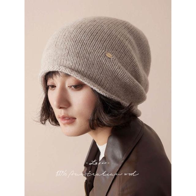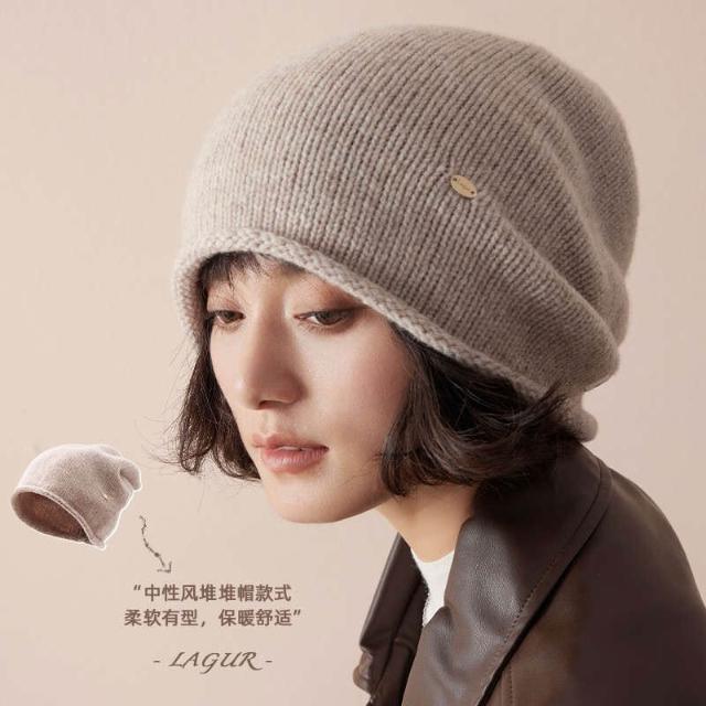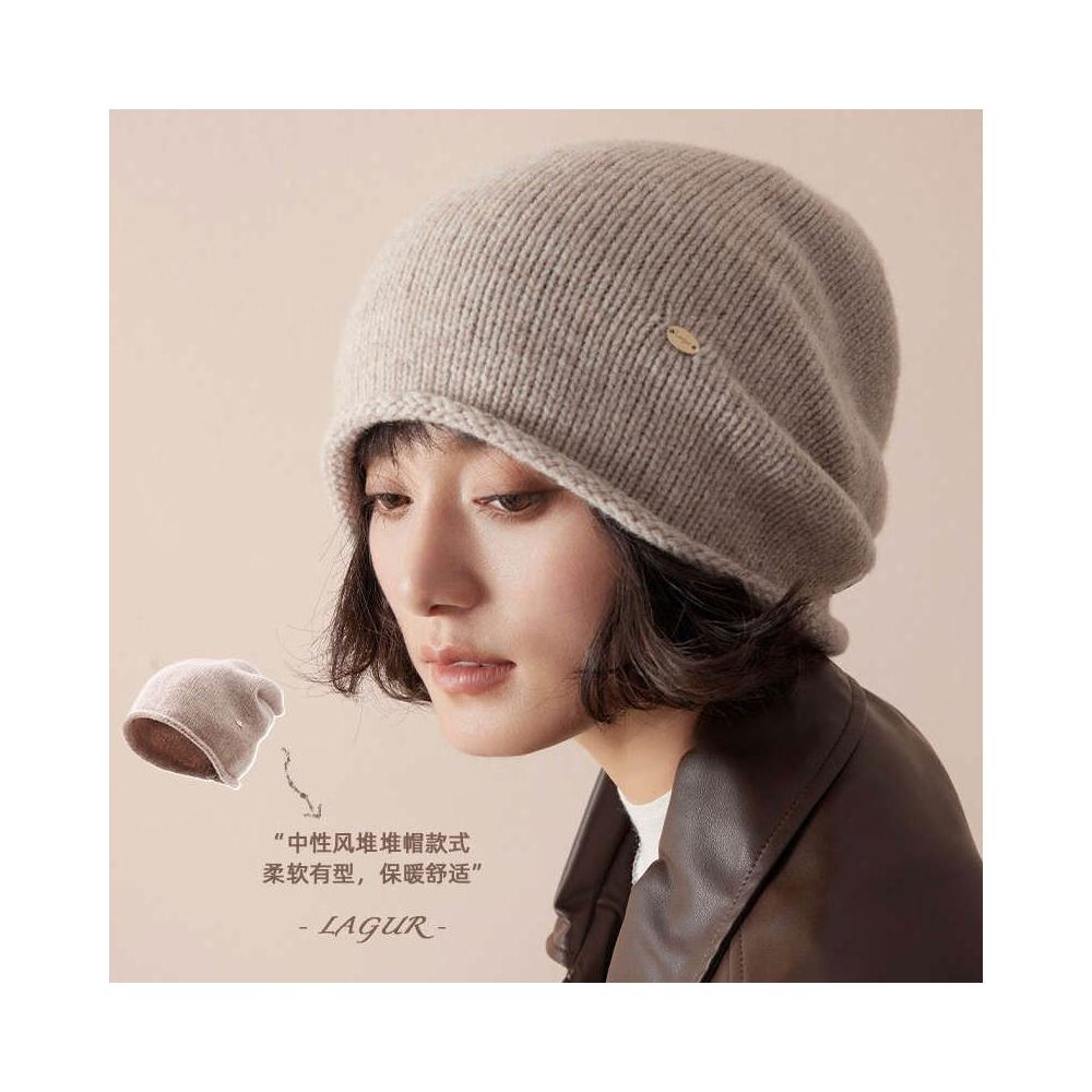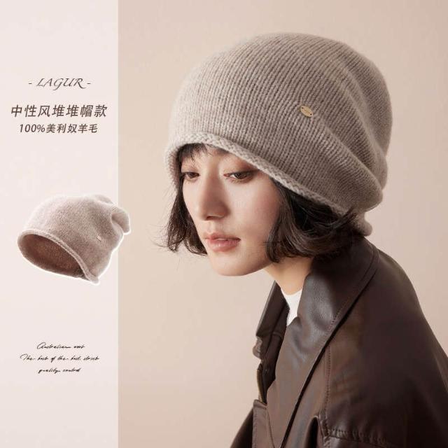 比比購 全羊毛冬季加厚冷帽男女慵懶堆堆帽針織帽高級感