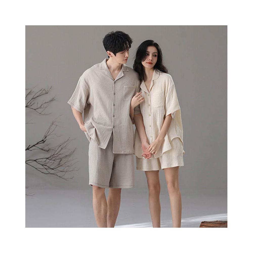 比比購 春夏抗菌雙層紗可外穿睡衣情侶短袖棉睡衣開衫7A棉家居服套裝