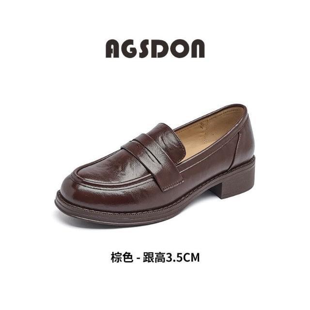 比比購 奧古獅登棕色樂福鞋女2026新款春季復古單鞋英倫風小皮鞋加絨棉鞋