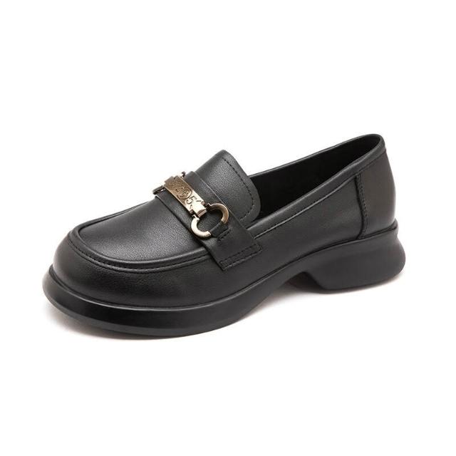 比比購 真皮女鞋2025春季新款一腳蹬軟底樂福鞋牛皮圓頭扣件休閑小皮鞋